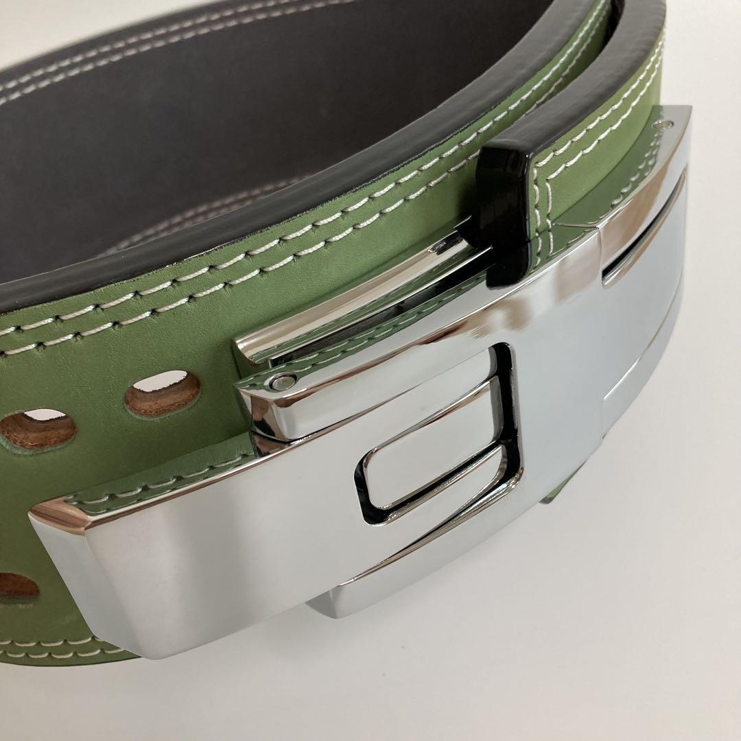 カラー:表、緑系(グリーン)/裏地、灰色系(グレイ、本革スウェード)/バックル、銀(光沢あり)