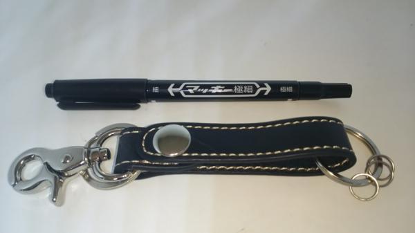 新品・未使用の 本革製 キーホルダー 便利な カラビナ付きです。※画像のマジックペンは大きさの参考です。