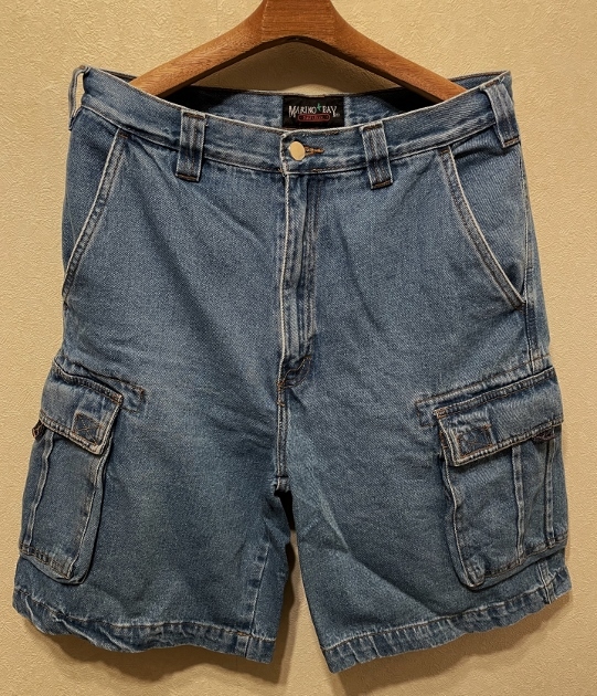 希少カーゴ90sオールドOLDデニムMARINO BAYショーツW33W32ショートパンツ6ポケットLストーンウォッシュ加工パキ綿コットン90年代ビンテージ