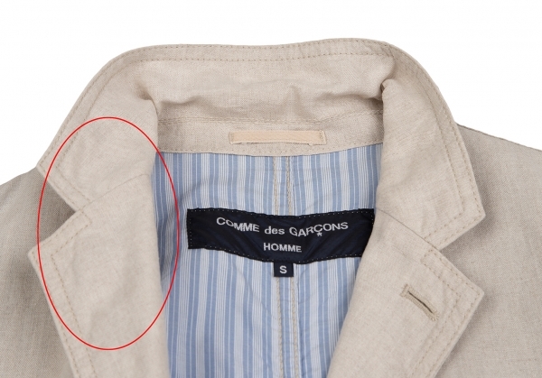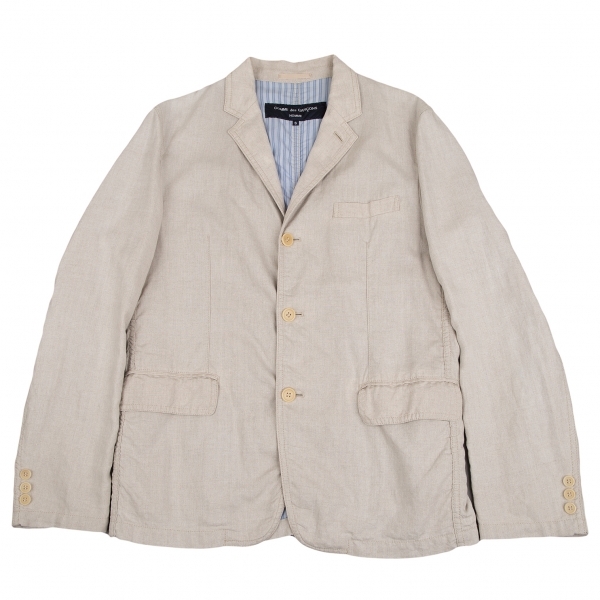 | コムデギャルソン オムCOMME des GARCONS HOMME リネン裏ストライプパッカリングジャケット ベージュS |
