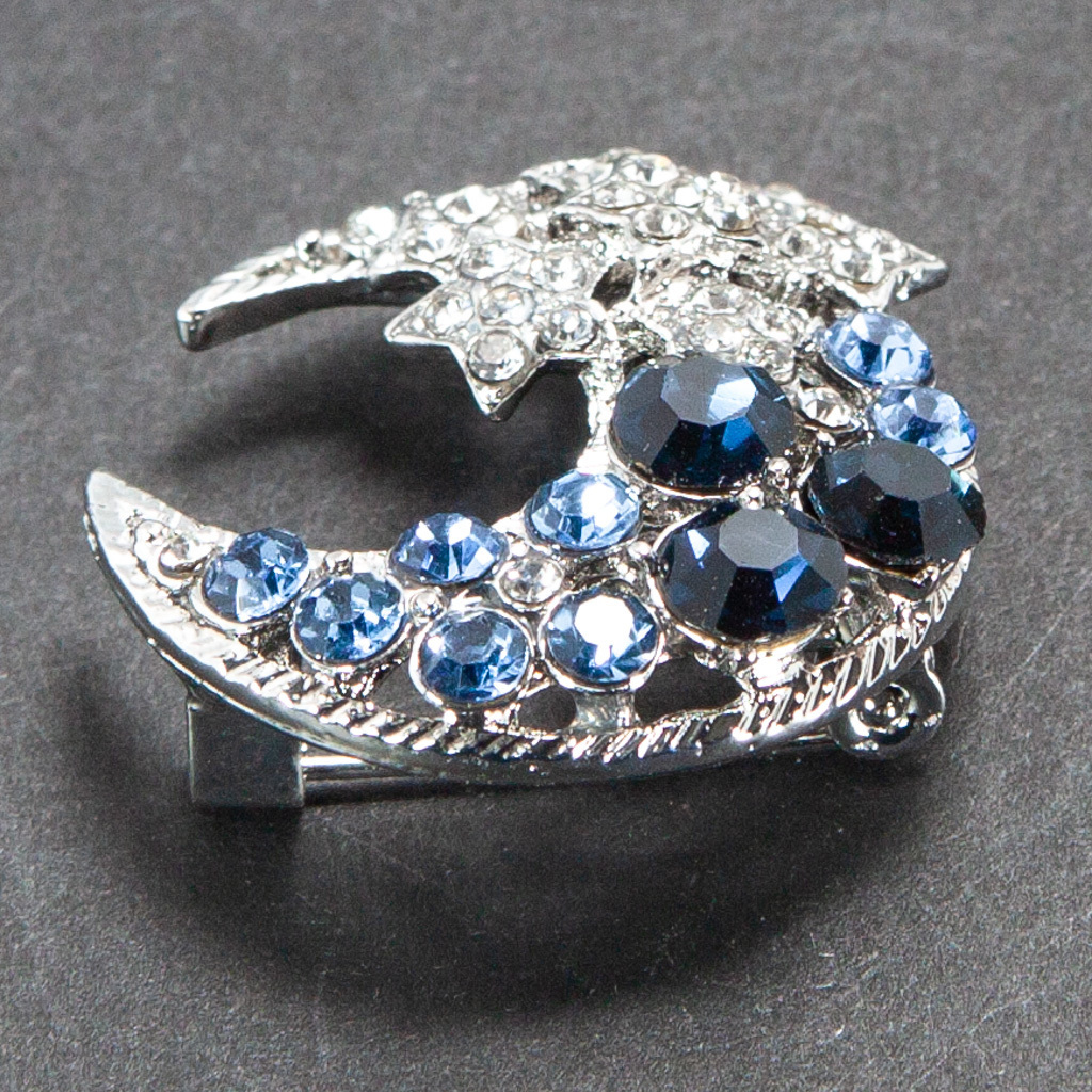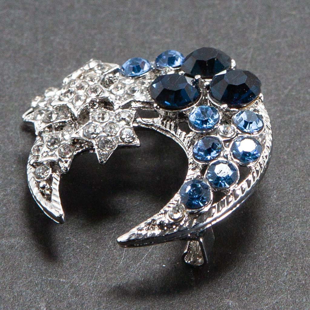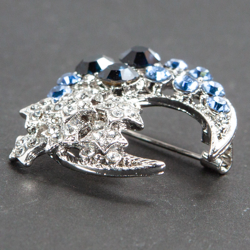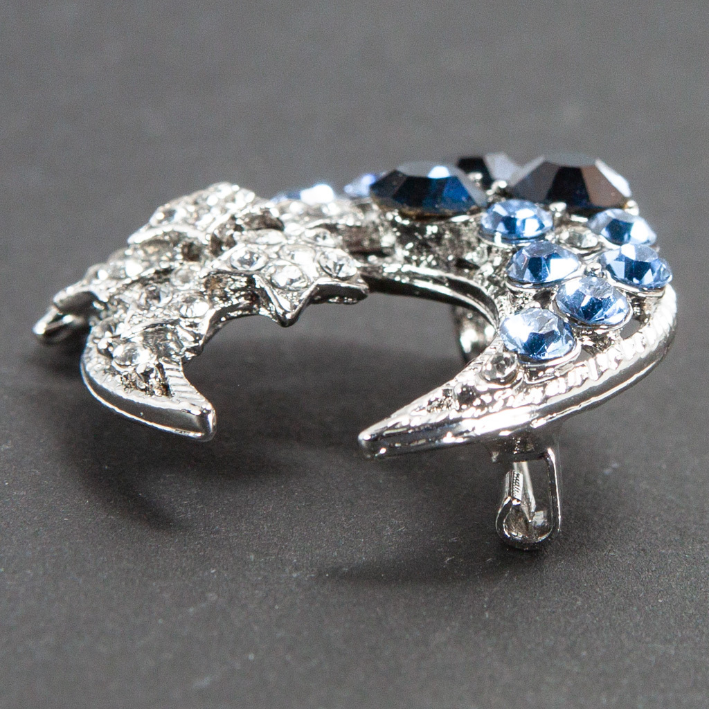 クレセントムーン 三日月に星屑のラインストーンブローチ