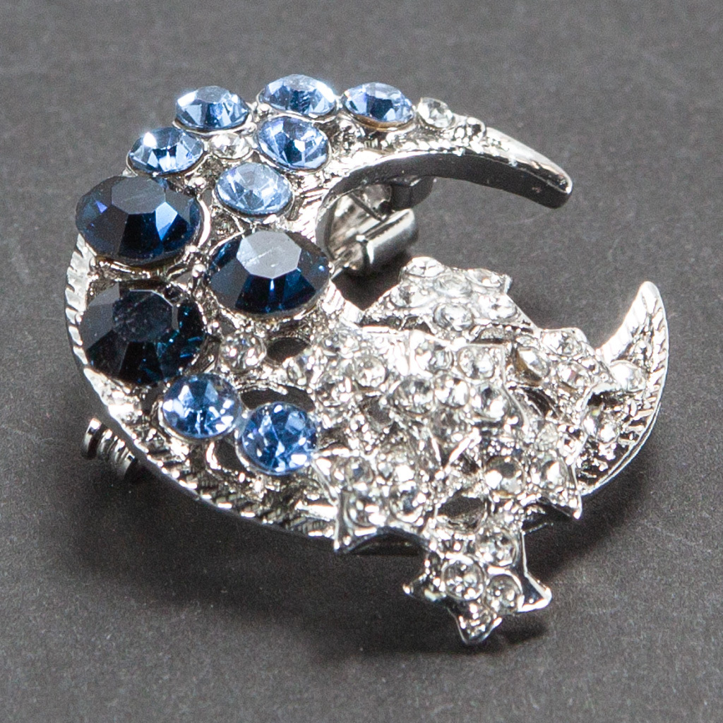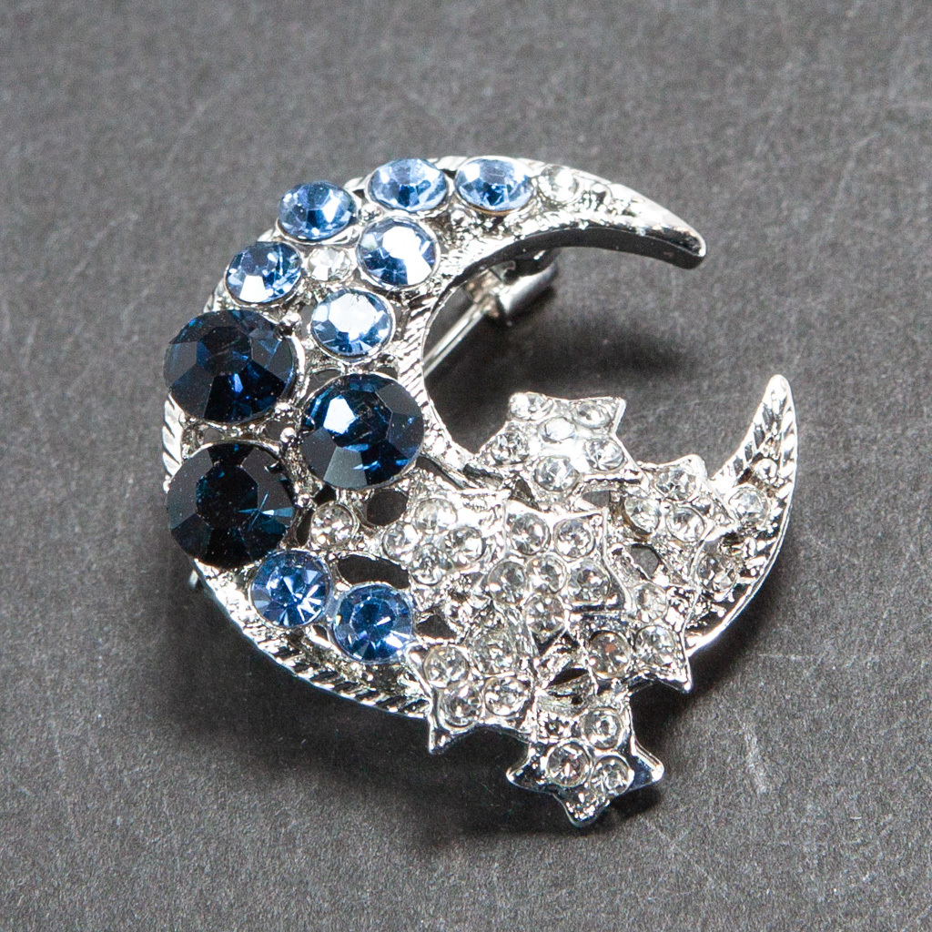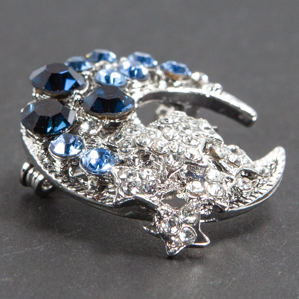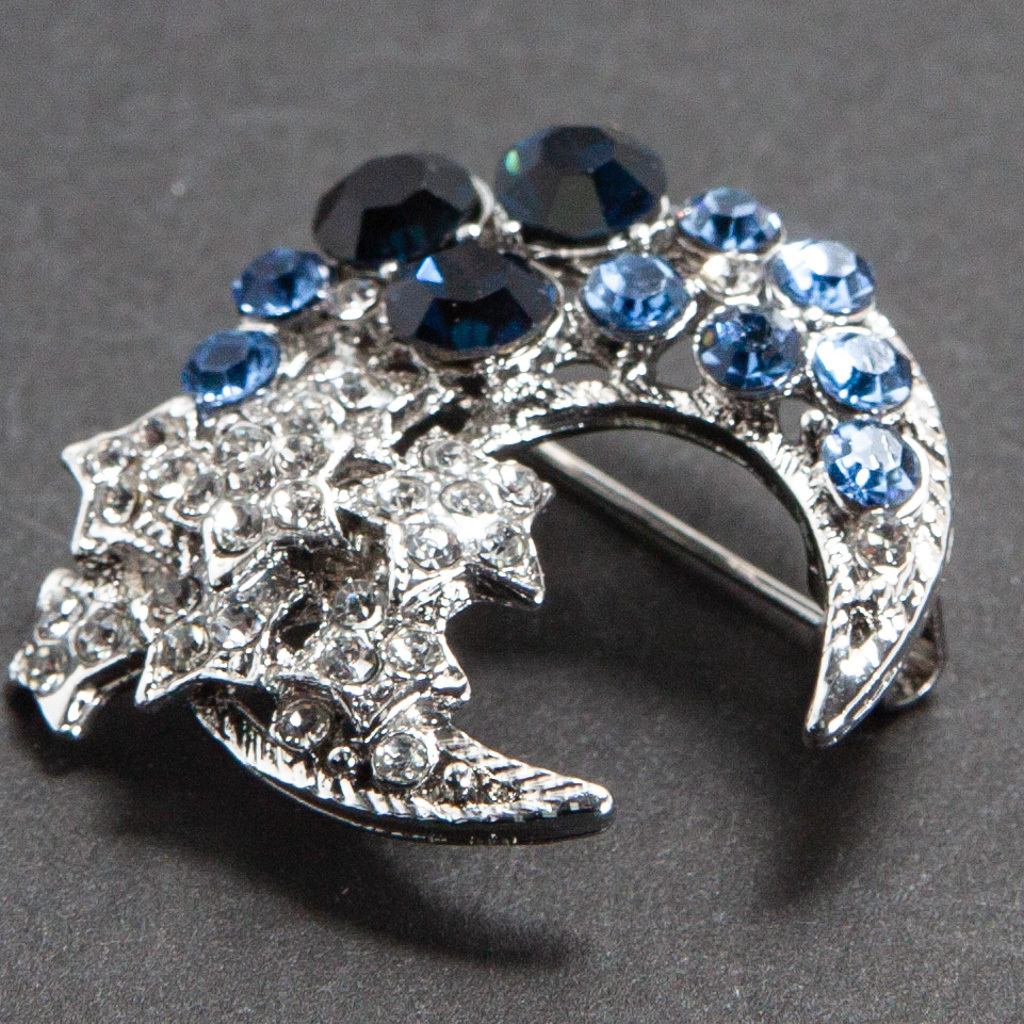 クレセントムーン 三日月に星屑のラインストーンブローチ