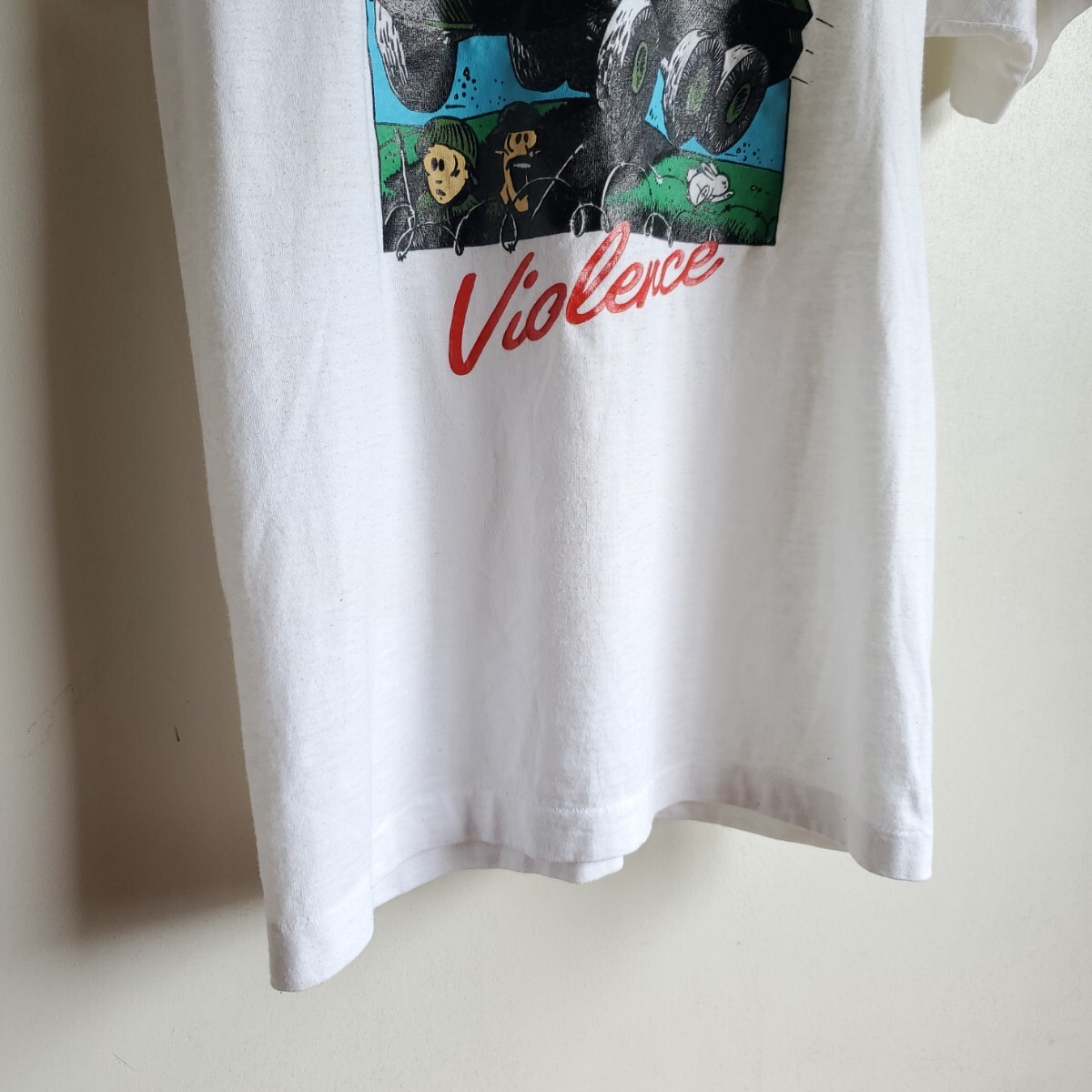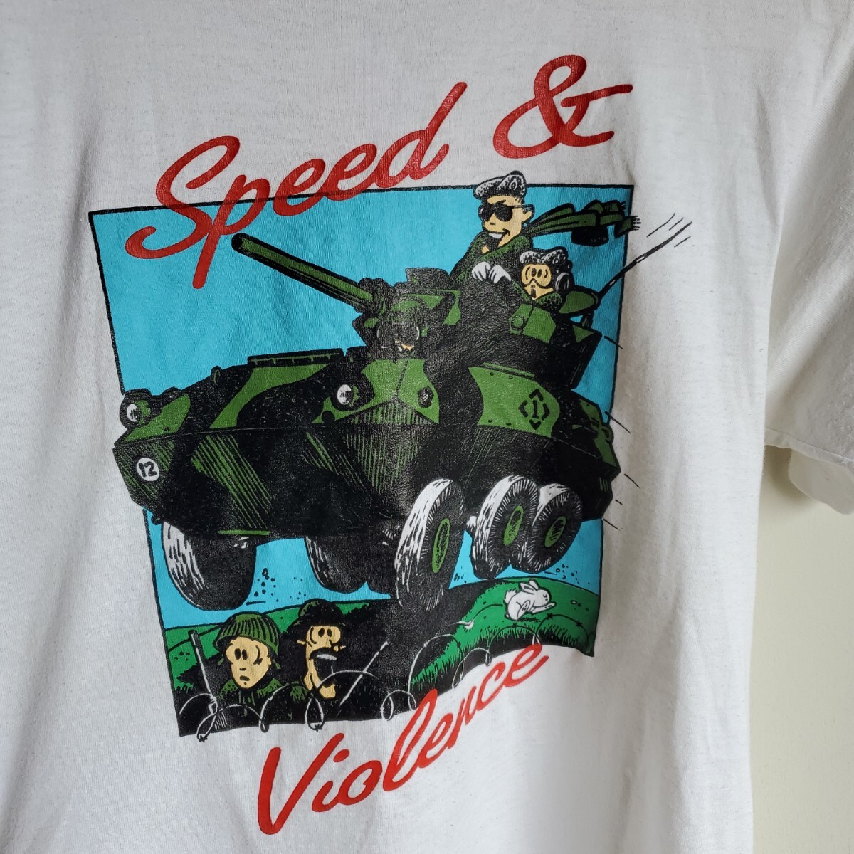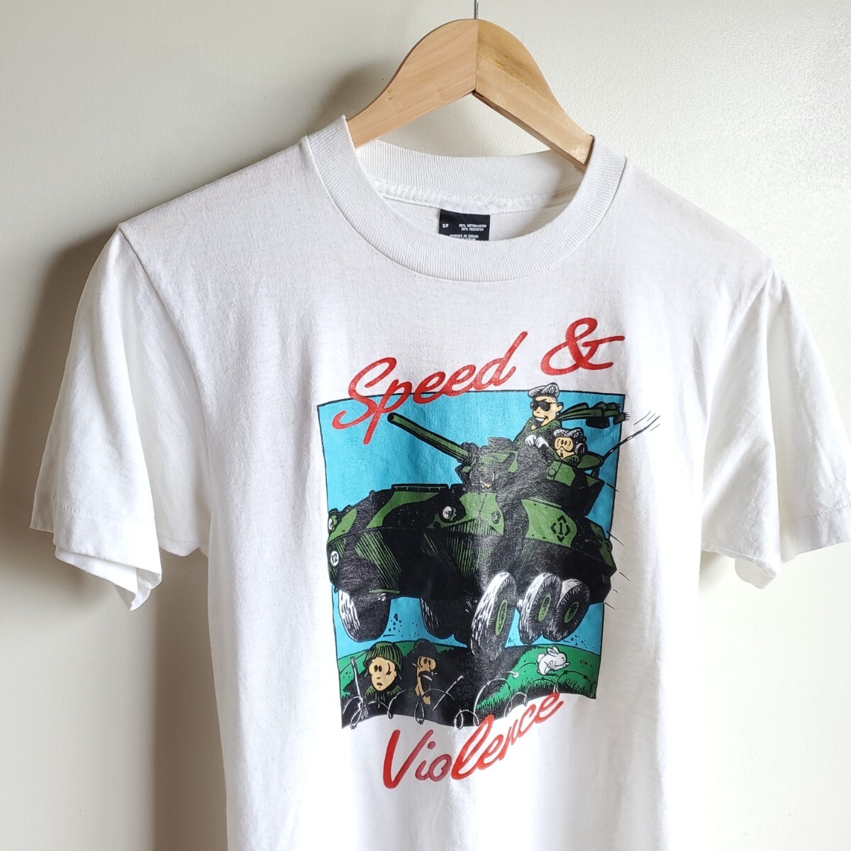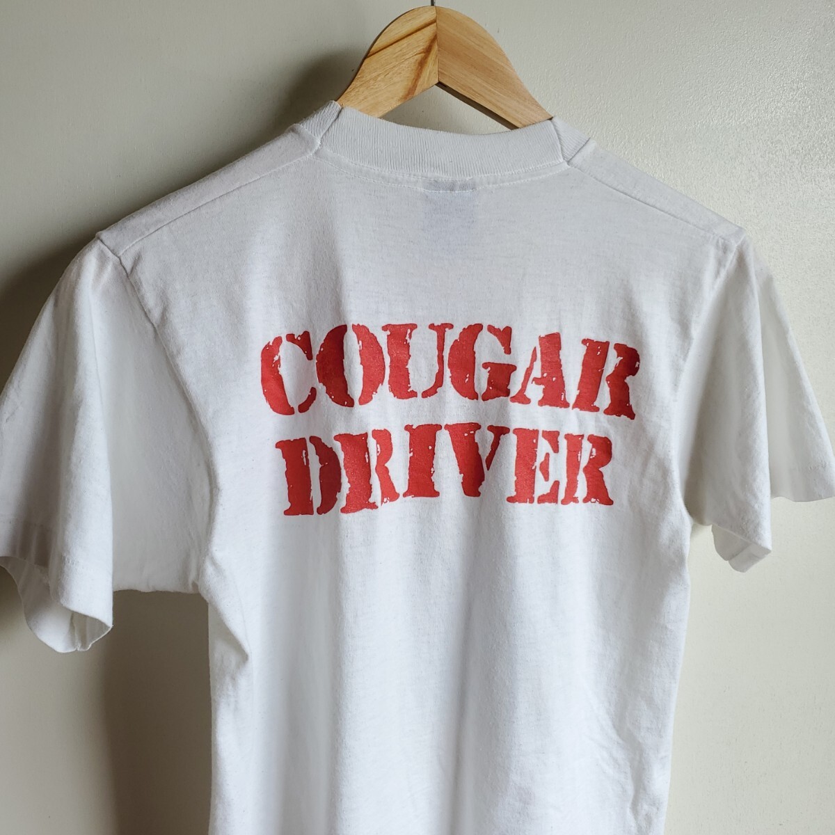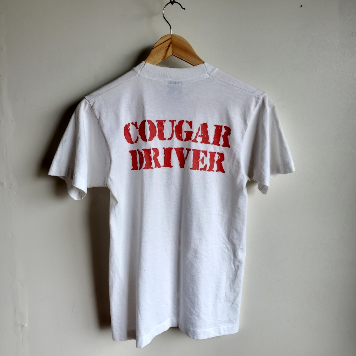 I2◆【sizeS】90s カナダ製 SCREEN STARS BEST プリントTシャツ 半袖 白 戦車 COUGAR DRIVER vintage 中古 USED 古着