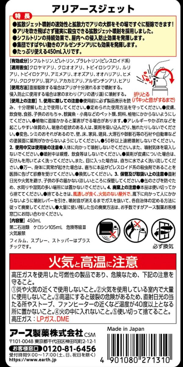 | 商品名 | 【まとめ買い】アリアースジェット 容量450M×20点セット アース製薬 殺虫剤・アリ |