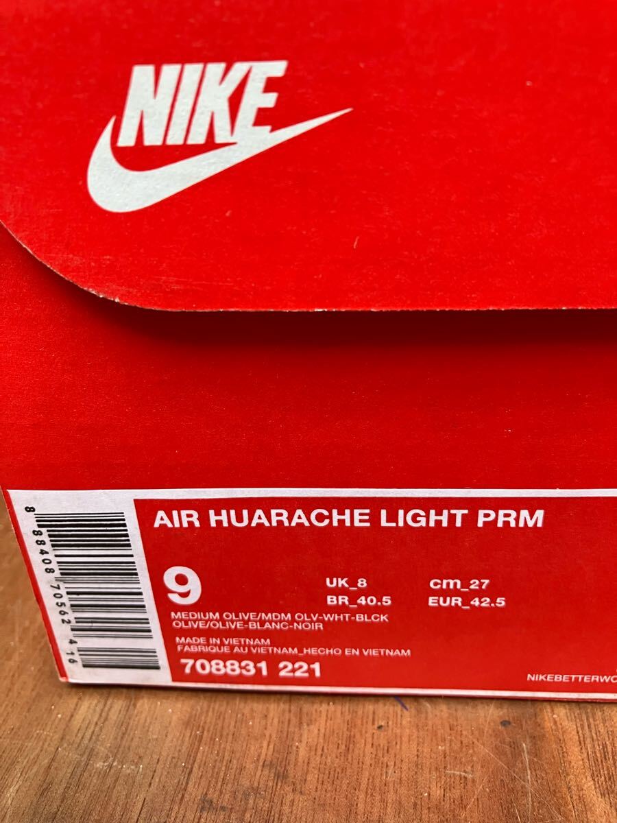 Nike Air Huarache Light(ハラチ)EU別注カラー オリーブ白 us9(27cm)新品箱付です。2014年製のため年月経過の変色、劣化はあると思います。正規店購入、本物です。