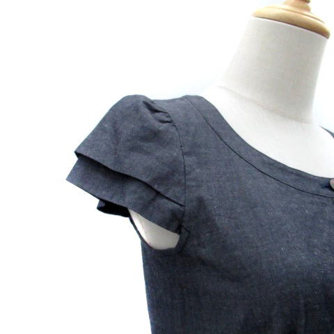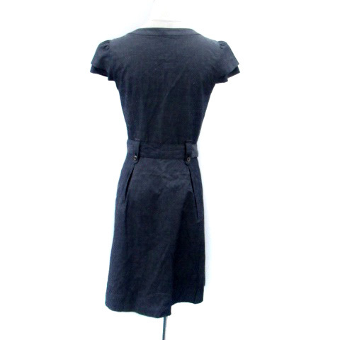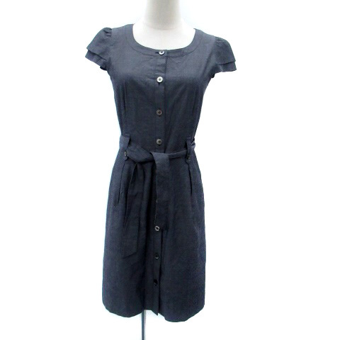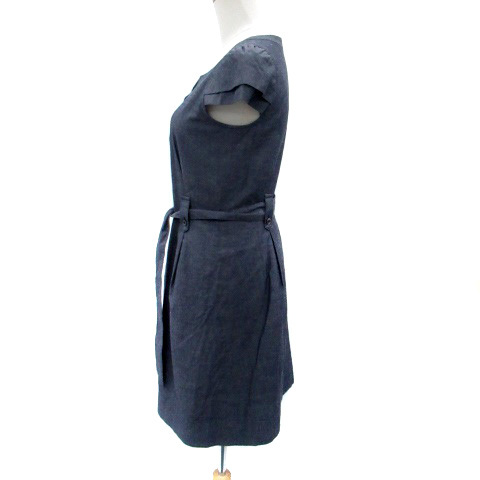 ロペ ROPE ワンピース ラウンドネック 半袖 ひざ丈 リボンベルト付き 9 M 紺 ネイビー /HO6 レディース