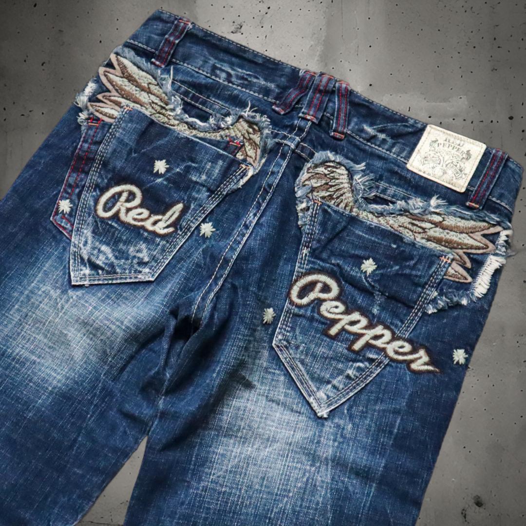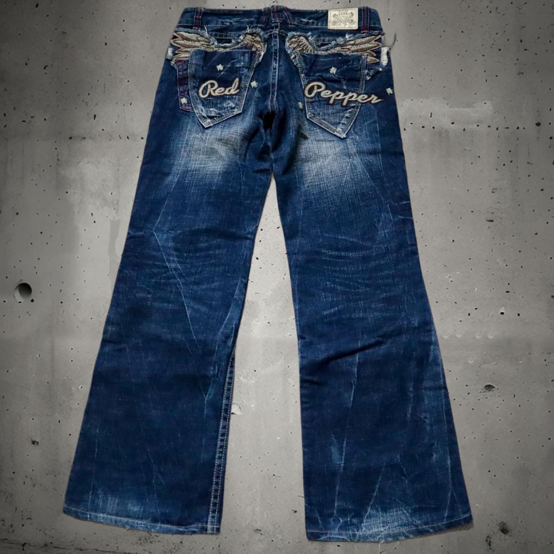 レッドペッパー/REDPEPPER フレアデニムパンツ ダメージ加工 刺繍 天使の羽 | |||