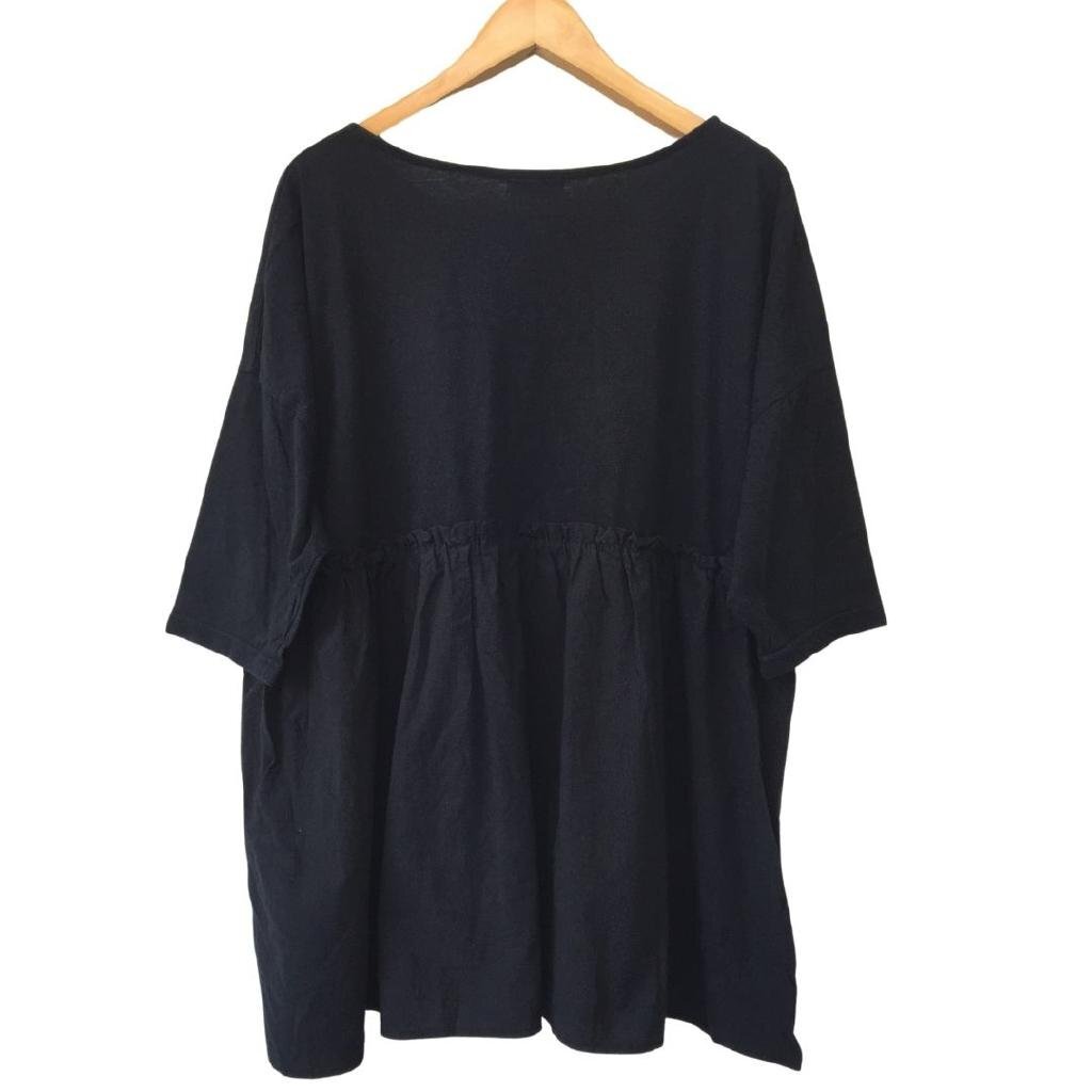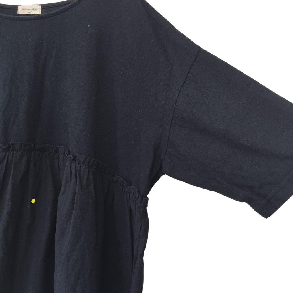 【送料込】 Samansa Mos2 サマンサモスモス カットソー ブラック 黒 綿 七分袖ドッキングチュニック sizeF(フリー) ナチュラル/969582