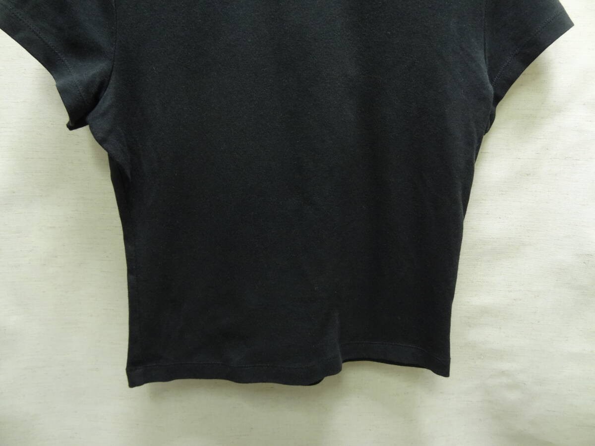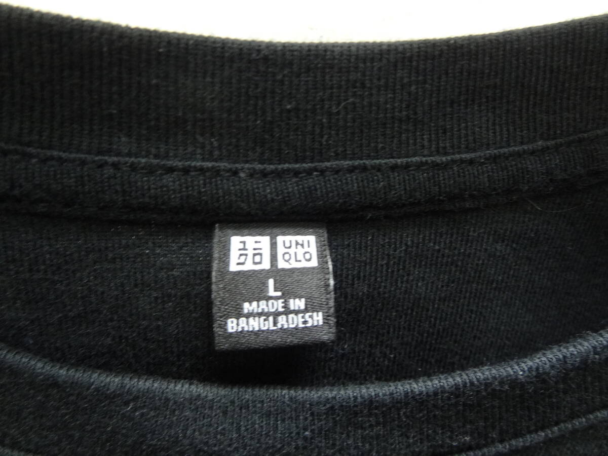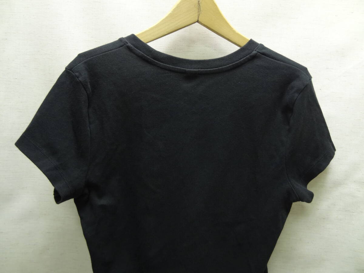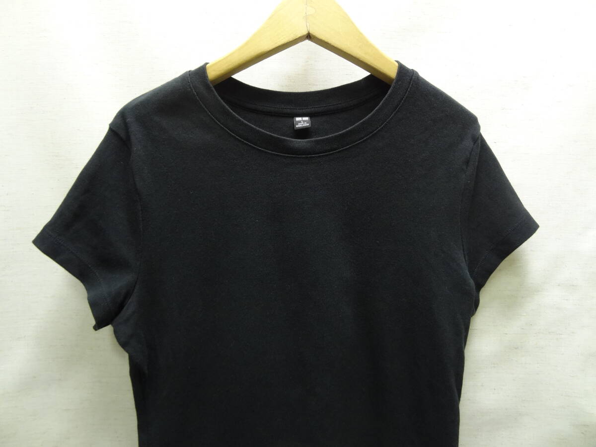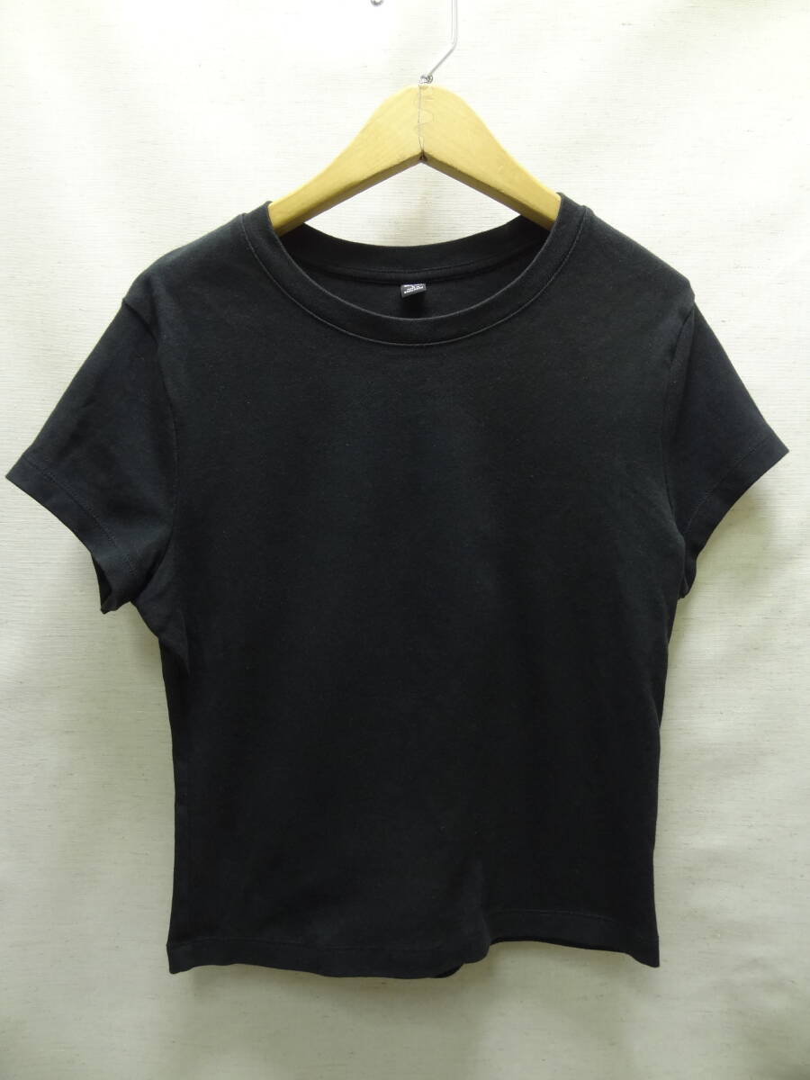 全国送料無料 ユニクロ UNIQLO レディース 綿96% ポリウレタン4% 黒色 無地 半袖 ストレッチリブ素材 Tシャツ L サイズ