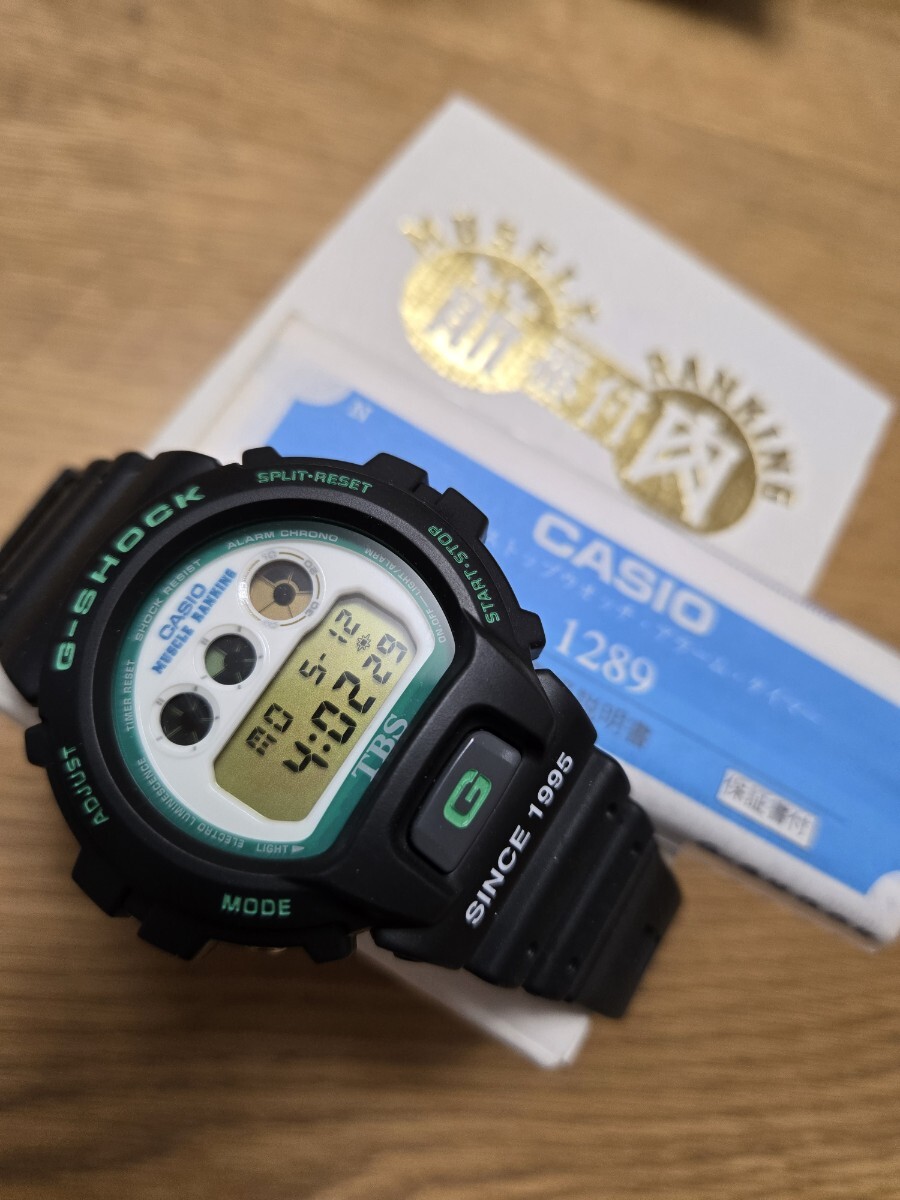 CASIO Gショック 1995年 TBSテレビ 筋肉番付 ラスト1本! 1999年発売生産終了モデル 希少個体! DW-6900 ベルトにロゴ入り バックライトにロゴが浮かびます 新品、未使用品、完品 交換済み! 付属品、箱、取説付 ガラス、裏ブタ傷無し なかなか見かけないのでこの機会に如何ですか!