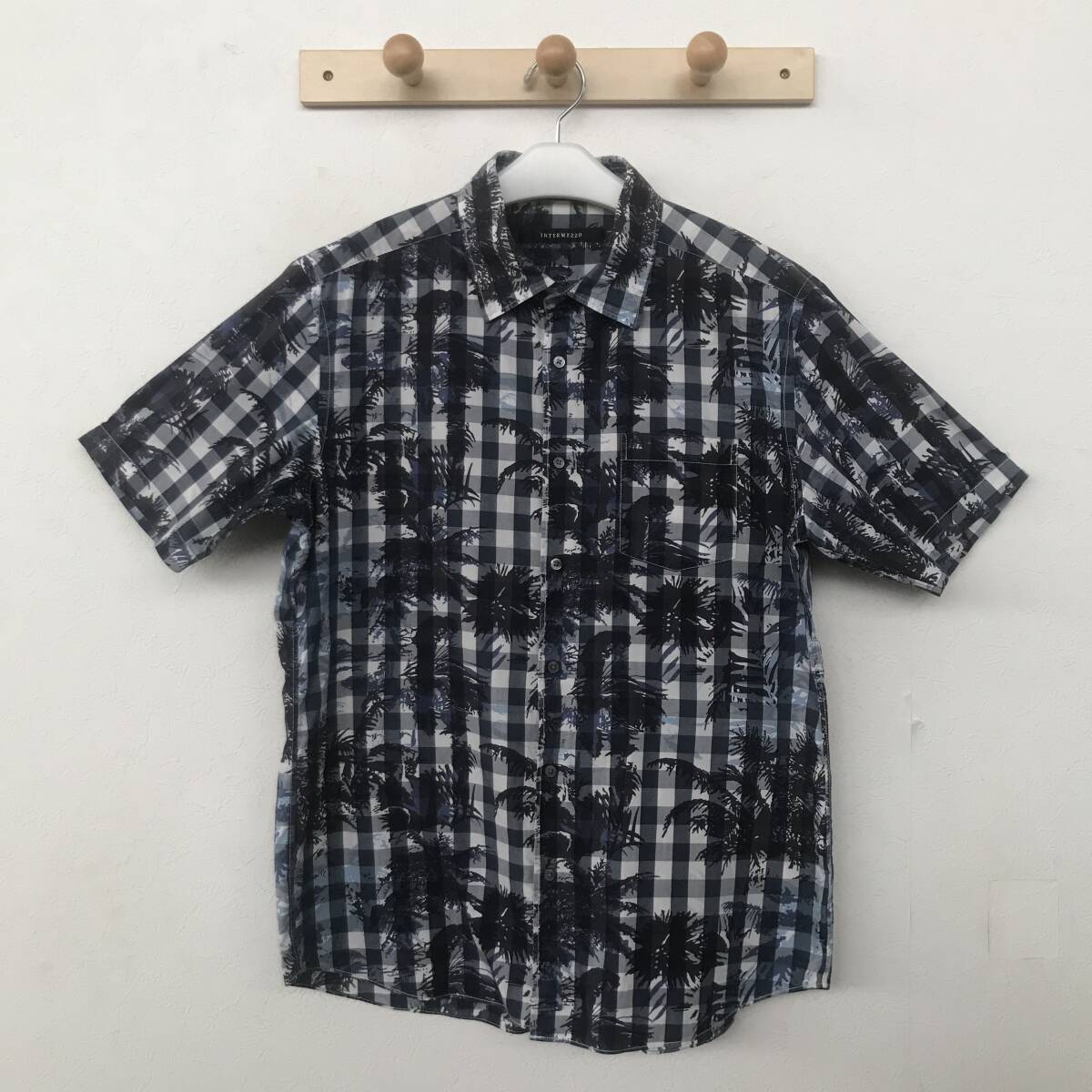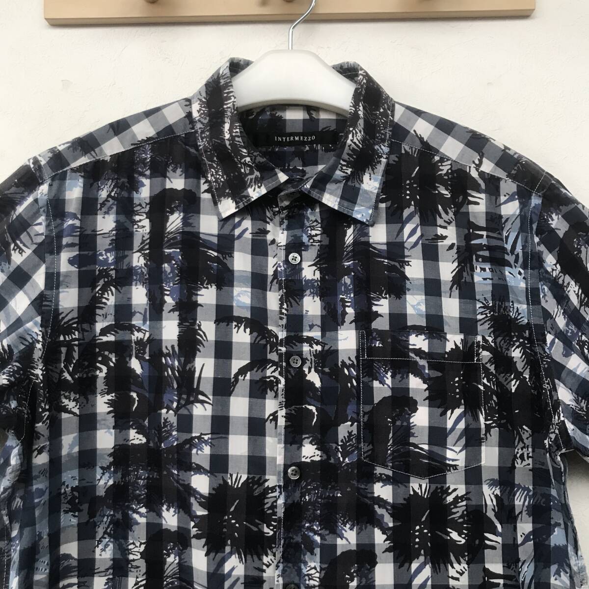 INTERMEZZO インターメッツォ メンズ 半袖 ボタニカル&チェック柄シャツ 良品 size 2L BEE1204