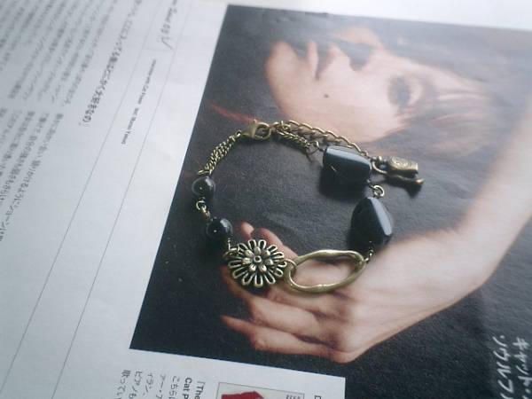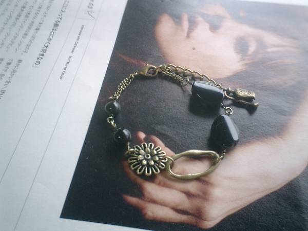 休日のシネマ・・シリーズです♪お気に入りのオニキス・・シックな秋色のオニキスのブレスレットです♪♪丸玉やオーバルなどデザイン違いのオニキスにお花のチェーンを合わせてロマンチックな表情です♪お花のチェーンには8ミリの丸玉、16ミリのフラットオーバルのオニキスを合わせました♪長さは16センチ+アジャスター6センチで最長22センチ位です♪お揃いのブレスレットやネックレスも出品しています♪シンプルで合わせやすいデザインを考えました♪ハンドメイドをご理解いただいてノークレーム、ノーリターンでお願いします♪ |