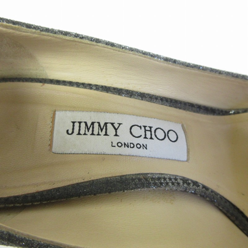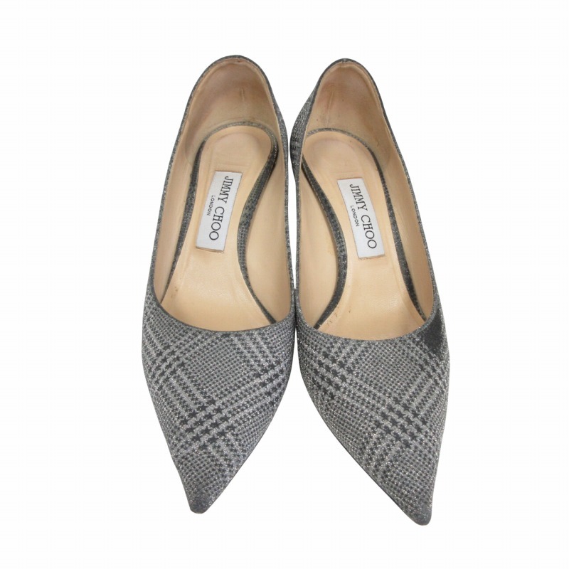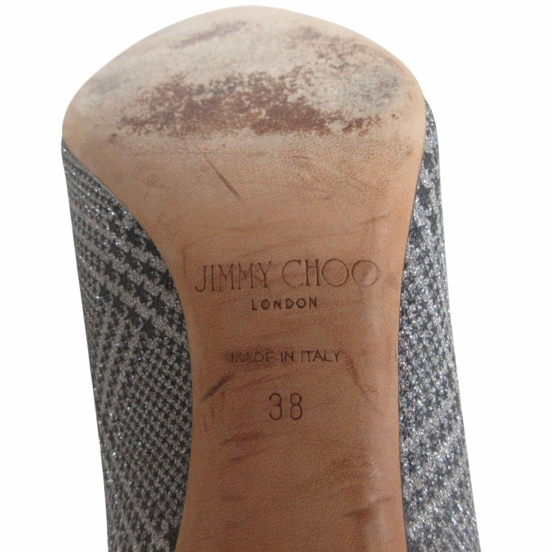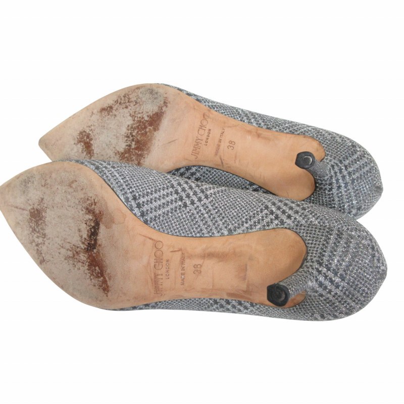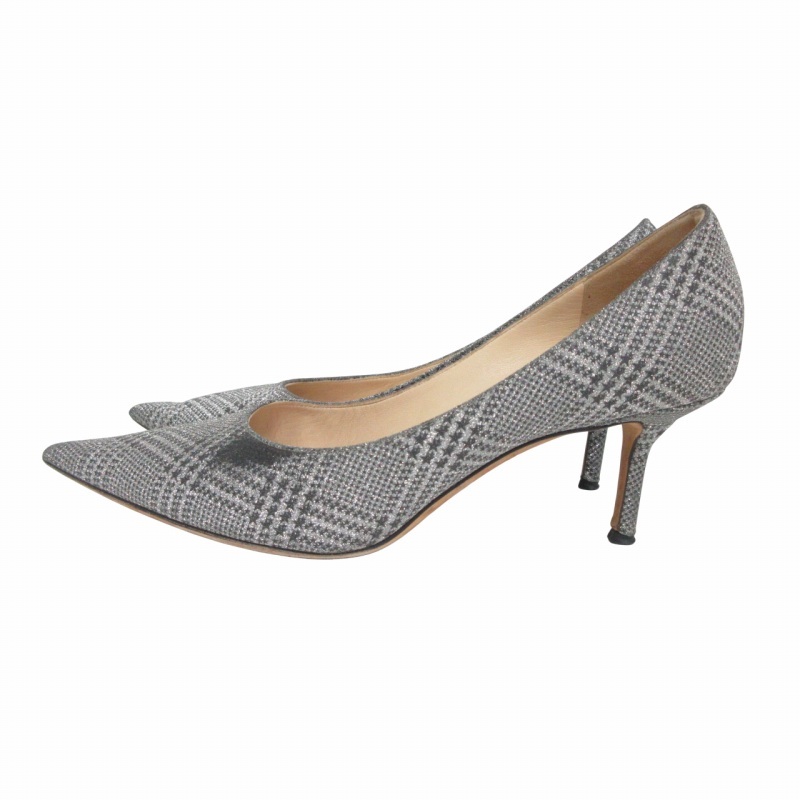 ジミーチュウ JIMMY CHOO 19SS パンプス ポインテッドトゥ グリッター LOVE 85 グレンチェック ラメ シルバー 38 25cm相当 レディース