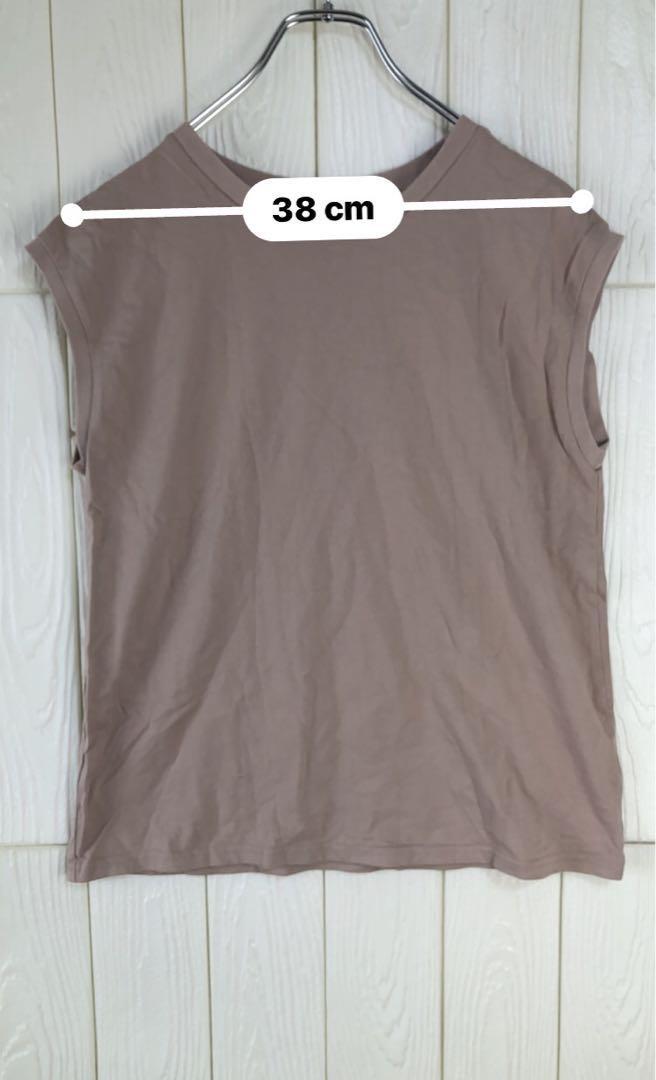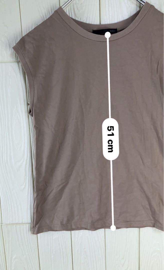 ベージュのノースリーブトップス、シンプルで着回しやすいデザイン。