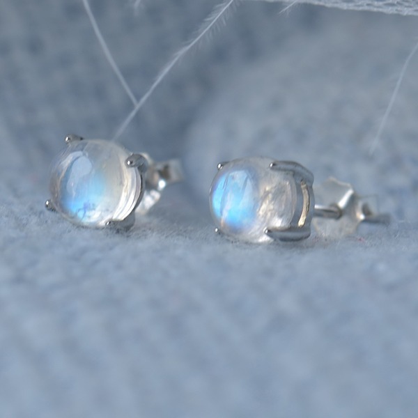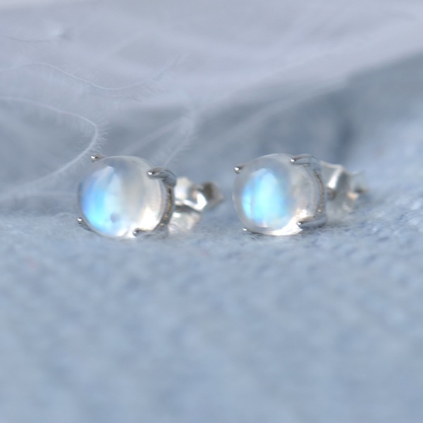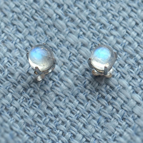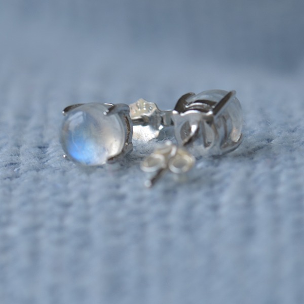 ナチュラルムーンストーンs925シルバーピアス、6mm 、ラウンド