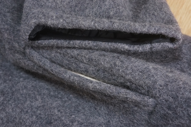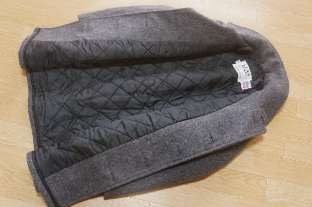 裏地はキルティング 中綿タイプ、色々と活躍するピーコートです。