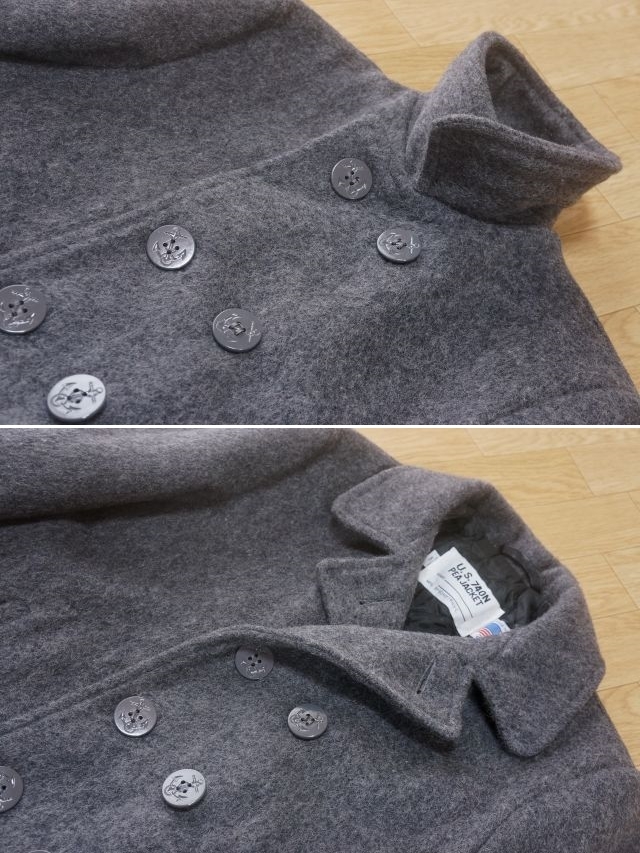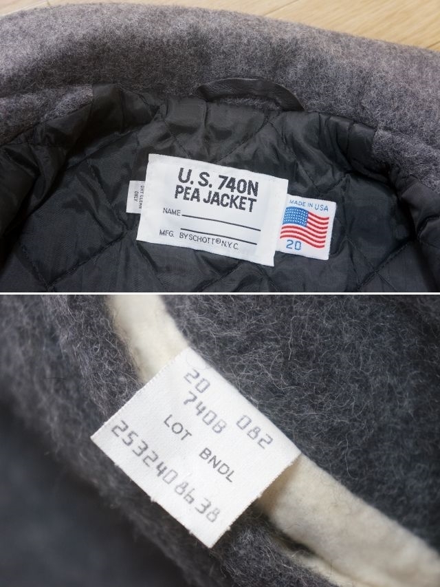 J450 即決 USA製 Schott ショット ウールメルトン Pコート ピーコート 裏地キルティング中綿 20 袖丈変更 グレー