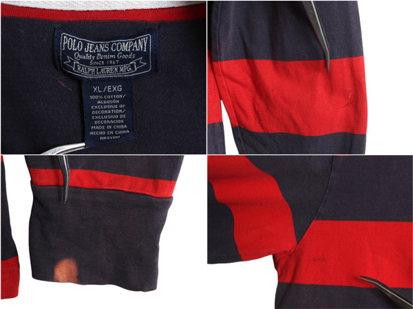 商品名 | ポロジーンズ ラルフローレン ボーダー 長袖 ラガーシャツ メンズ XL / ラグビー 長袖シャツ ポロシャツ コットン ツートン 大きいサイズ |