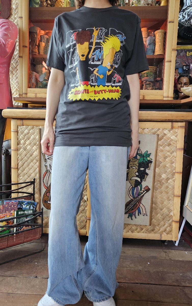 | BEAVIS & BUTTHEAD : MTV Logo TEE 正規品 架空都市ハイランドを舞台に繰り広げられ、ビーバスとバットヘッドのブラックコメディ 「Beavis and Butt-Head」のオフィシャルTシャツ「MTV Logo」です。 ミュージシャンやファッションピープルの着用で、ココ最近盛り上がっているビーバス物! AC/DCやメタリカ好きのビーバスとバットヘッド! MTVロゴを背景にメロイック・サインをかかげヘッドバンキングするロッカーな2人,代表的なデザインのズバリなMTV版! Color: SMOKE 新品・US正規品 XLサイズ 180cm位の方~良いかと思われます。肩幅50cm,着丈75cm,身幅59cm モデル 161cm , Sサイズ着用 メール便送料¥250(代引き不可・紛失補償なし) THRASHER、Sailor Jerry等~アメキャラ・企業ロゴTシャツ等ライセンスアイテム、ラットフィンク関連品、バンドTシャツ等取り扱っております。 ** 他にも色々出品中です。 CWLPpC IWTS | |||||||