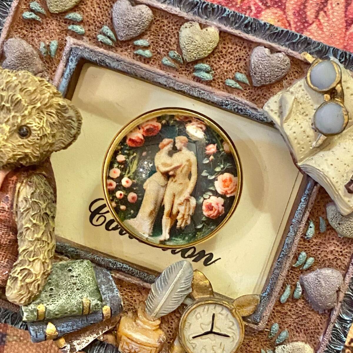 【着物リメイク ガラス帯留め 和洋折衷 和ロリータ ハンドメイド アクセサリー ルネサンスの恋と薔薇 GK-133】