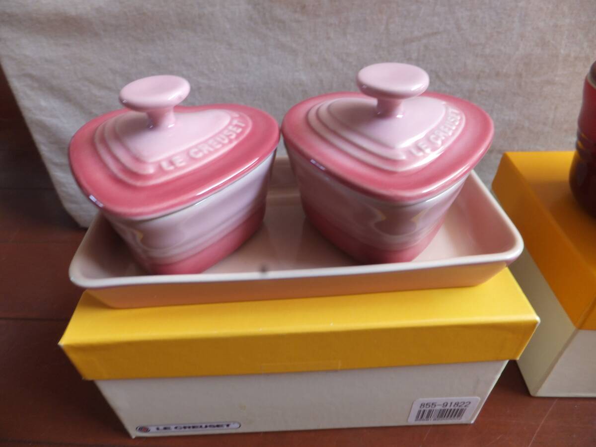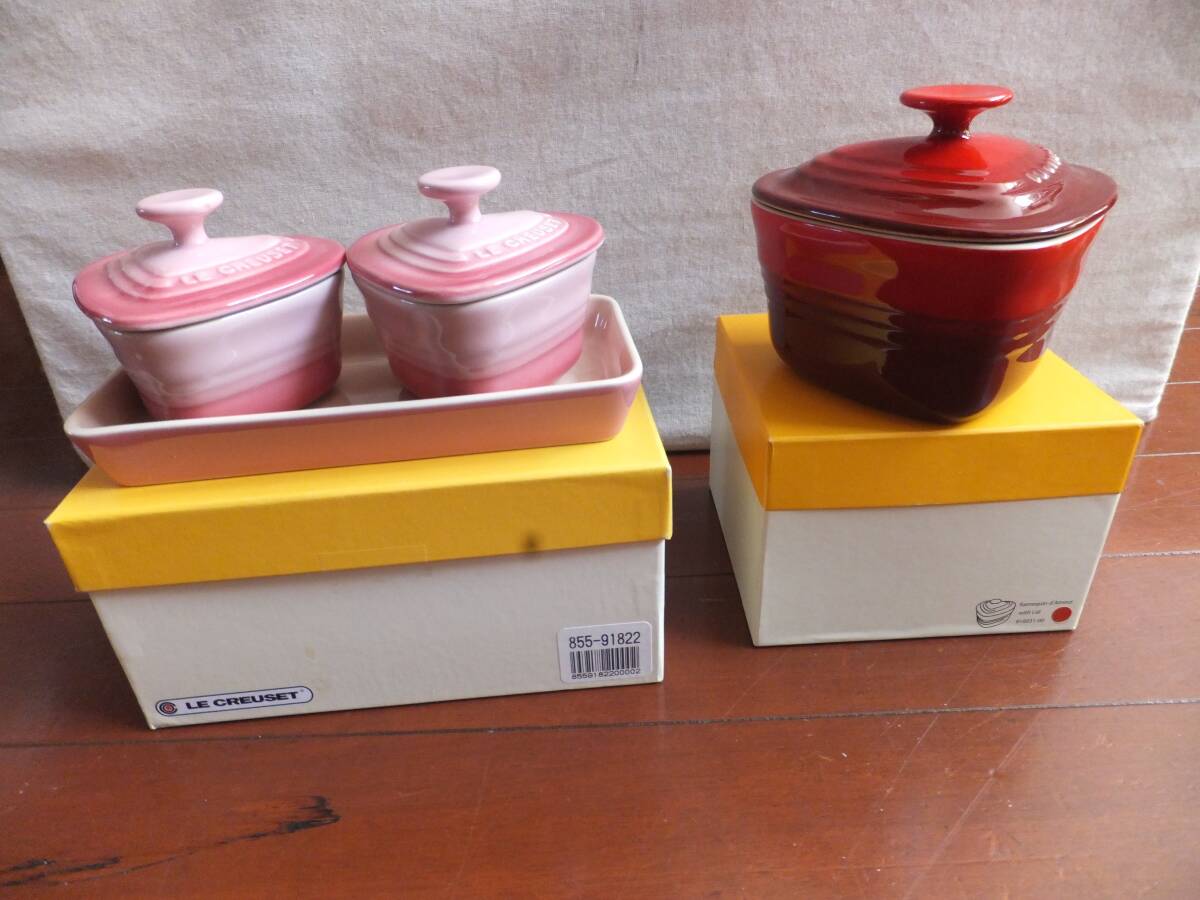 未使用品です。LE CREUSETルクルーゼラムカン2箱です。サイズは、ピンクトレー17.4×7.9×24cm、赤ラムカン8×7.3×4.1cm位です。箱は傷んでいます。自宅保管品ですので神経質な方は御遠慮下さいね。ノークレームノーリターンでお願い致します。その他いろいろ出品していますので見て下さいね。