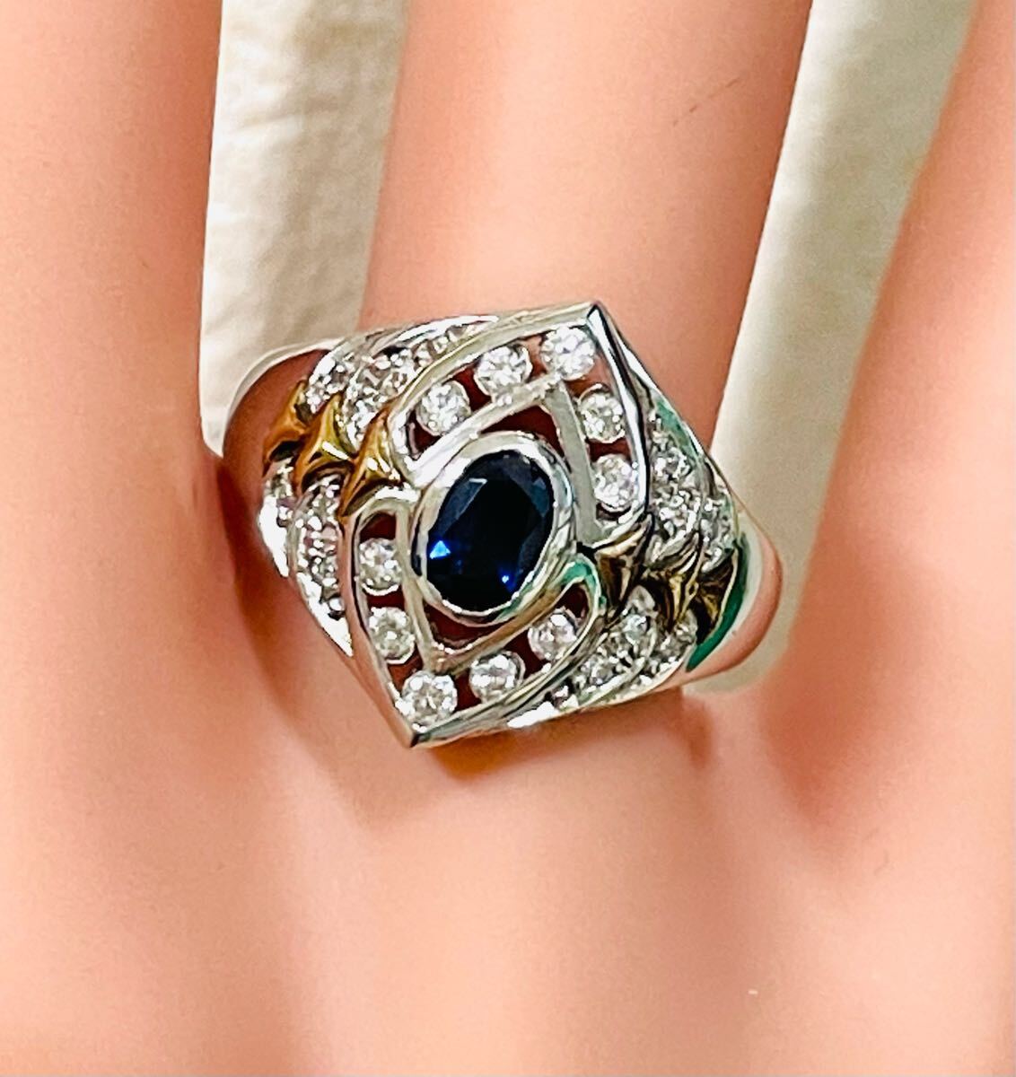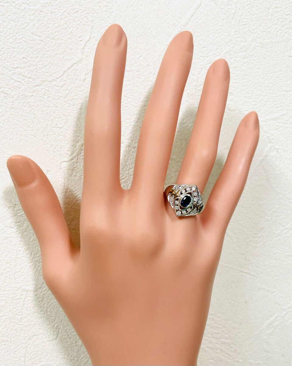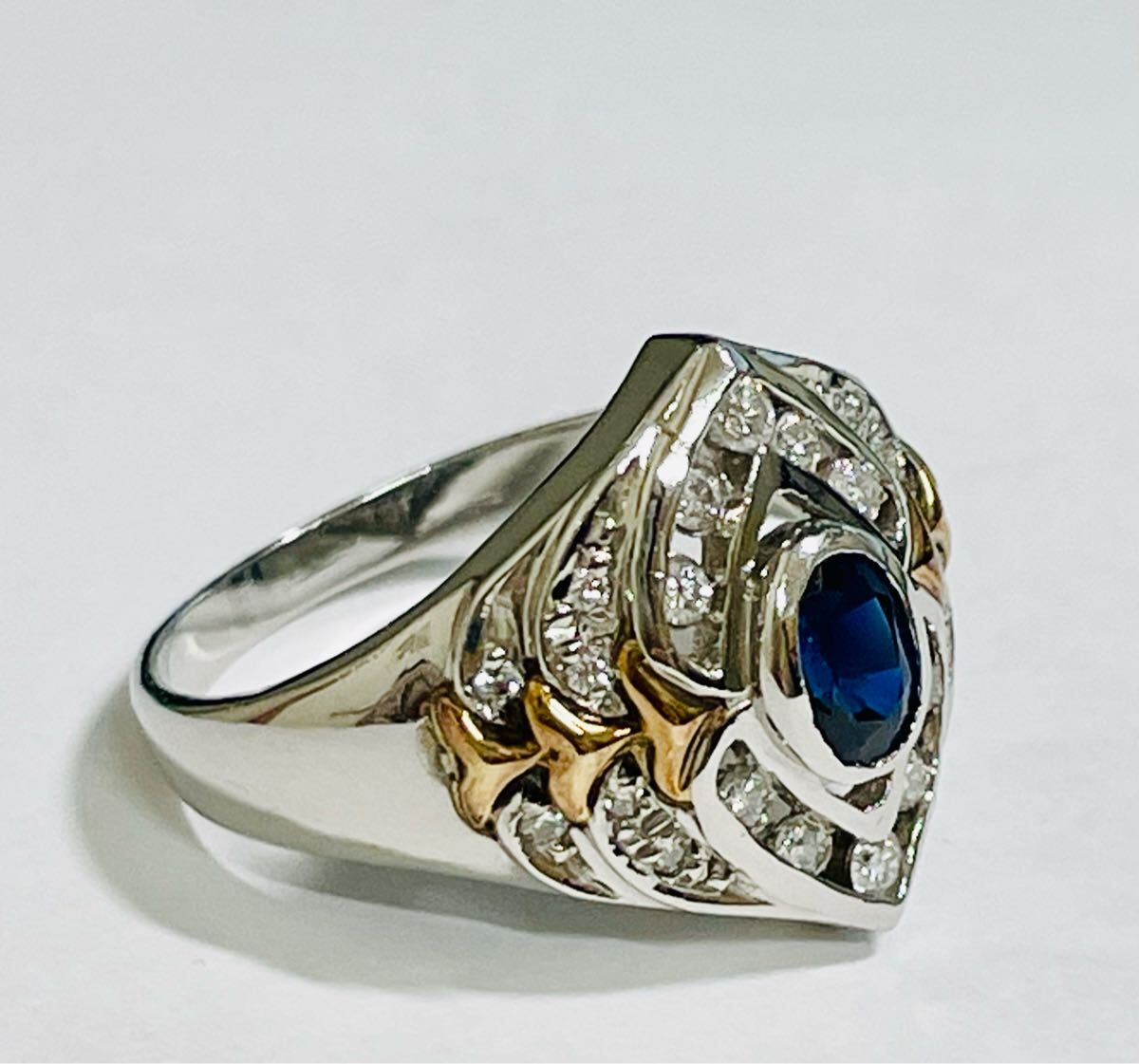 こちらは、Pt900/K18台にサファイア1石&ダイヤ22石付きリングです。