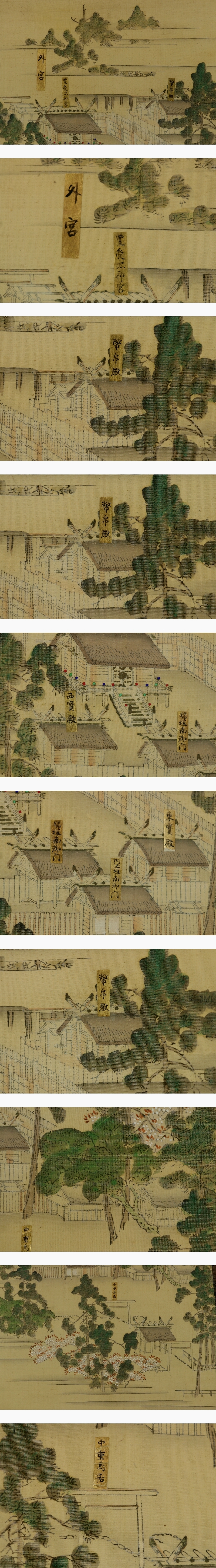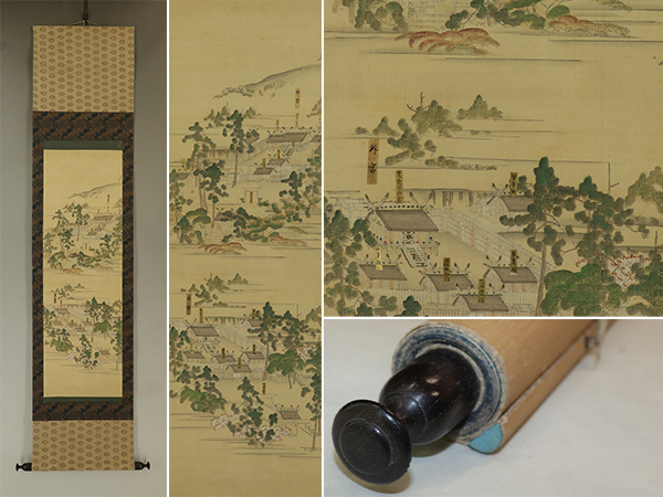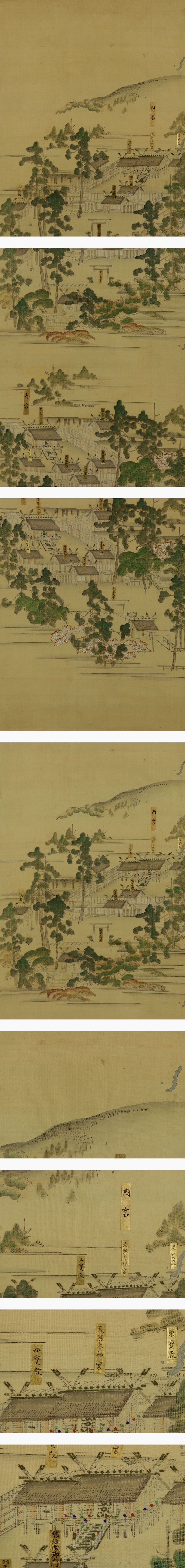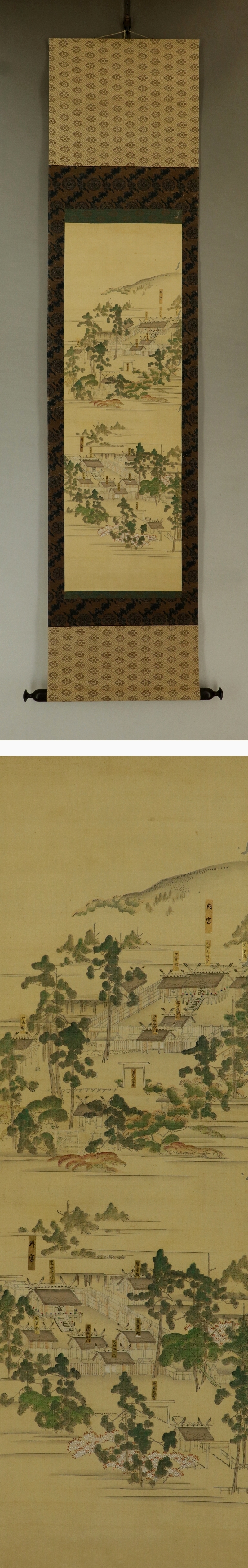 | №2502008【肉筆】細密画【伊勢両宮殿舎之図】◆絹本◆合箱◆掛軸 | |
