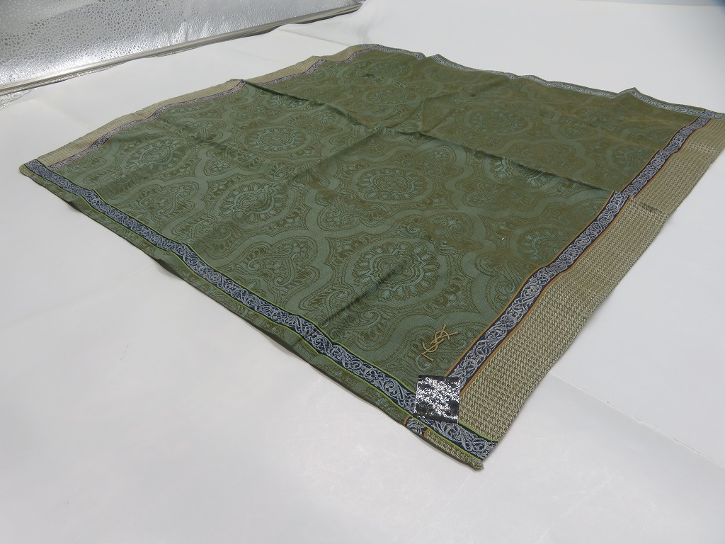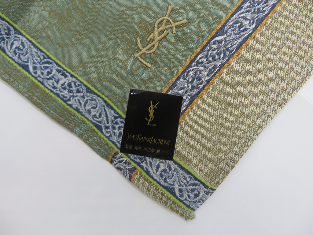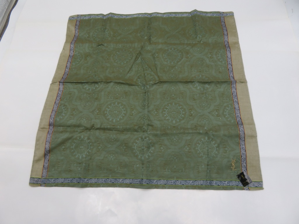 JM304★Yves Saint Laurent イヴ・サンローラン ハンカチ グリーン | ||