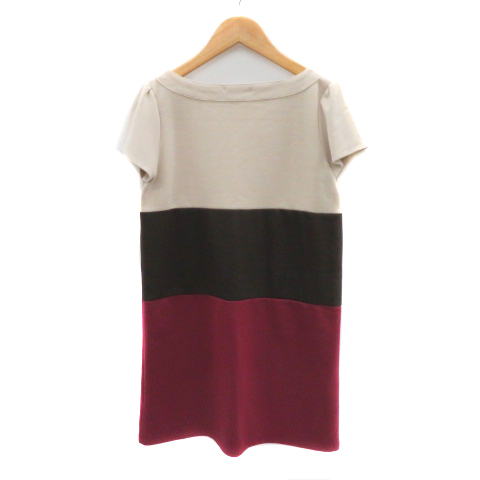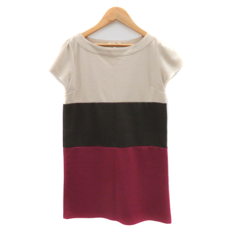 ジャイロホワイト JAYRO white ワンピース ミニ丈 半袖 M マルチカラー ベージュ ダークブラウン /YK31 レディース