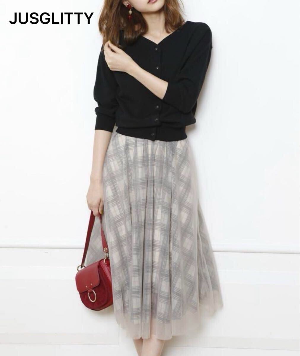 カジュアルになりがちなチェックも、チュールを重ねることでレディな雰囲気に・・・ 歩くたびにふわりとなびく揺れ感は女性らしく、シンプルなトップスと合わせてもおしゃれな着こなしに!!