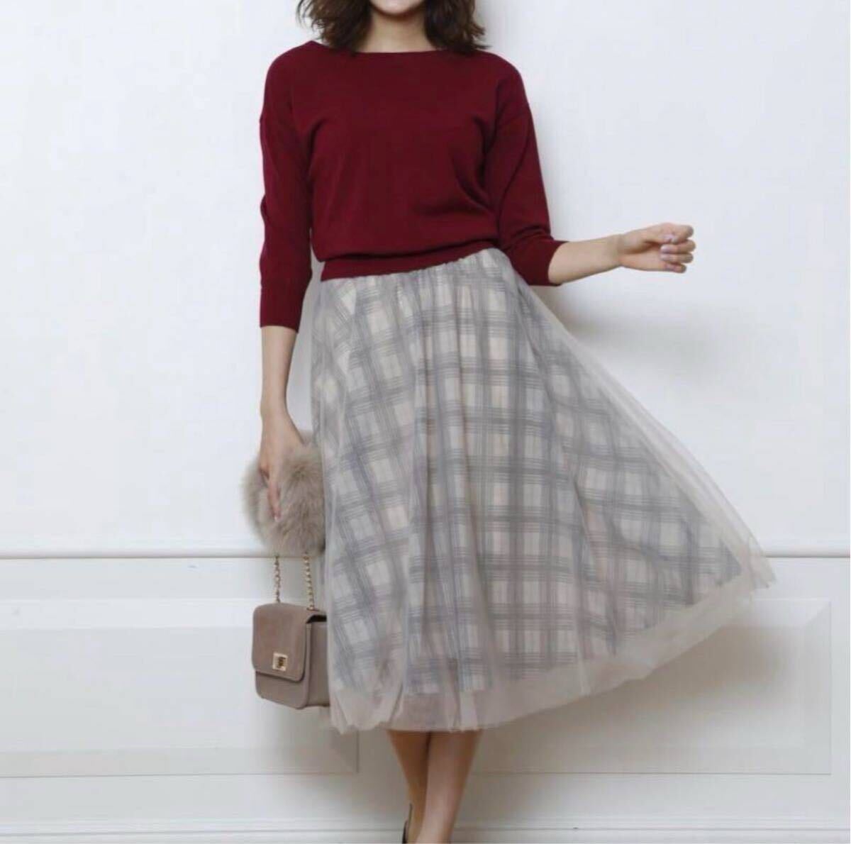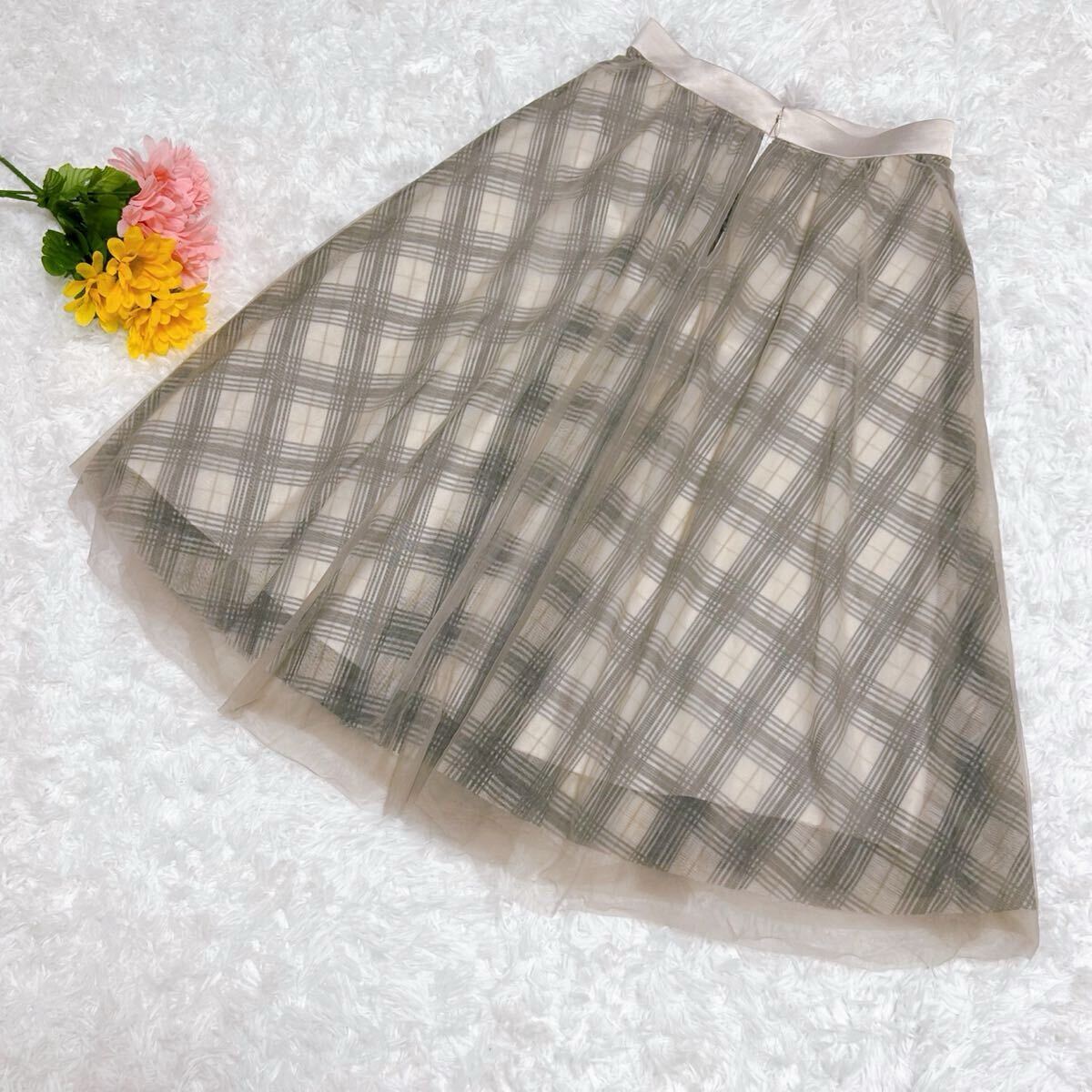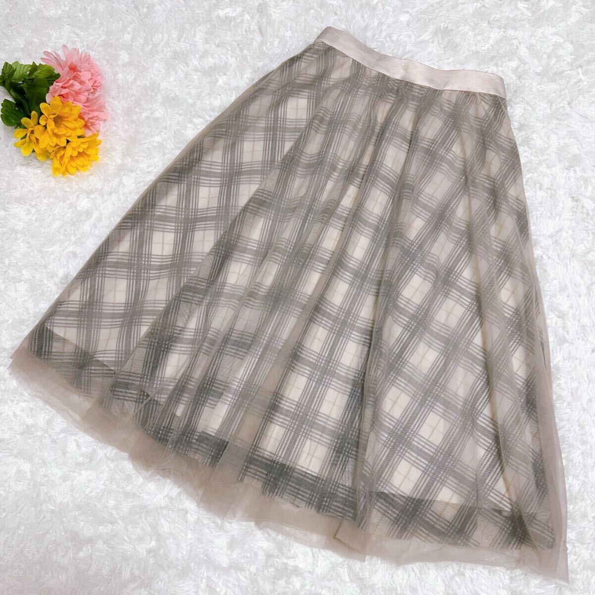 シアーなチュールを重ね旬デザインに仕上げた、チェック柄のフレアスカート。