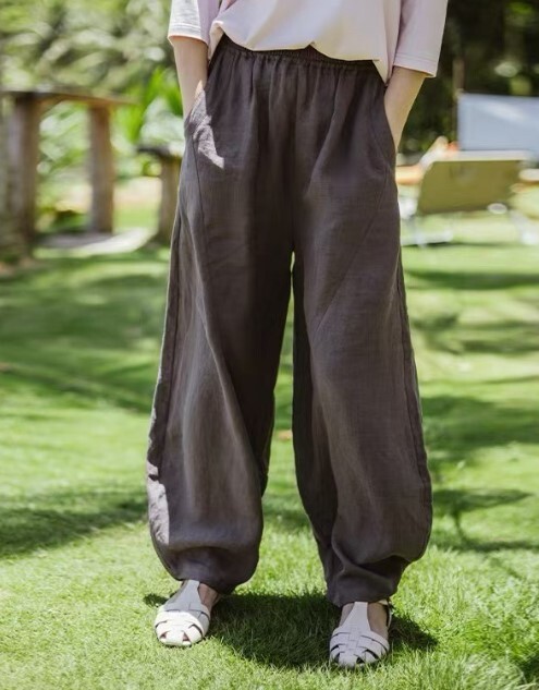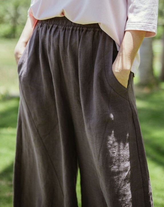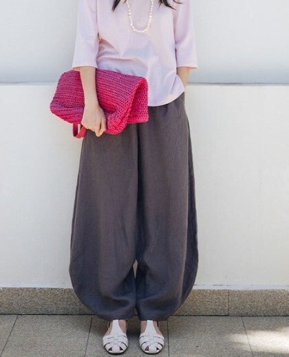 長さも幅もゆったりしているので、ぽってり形のパンツですね