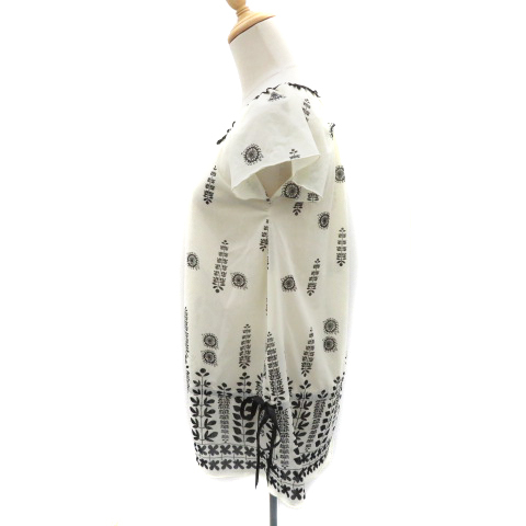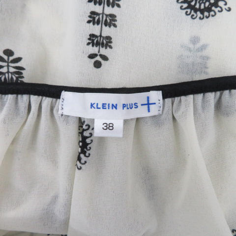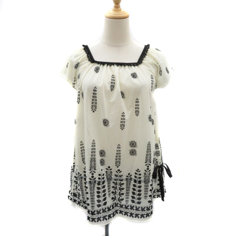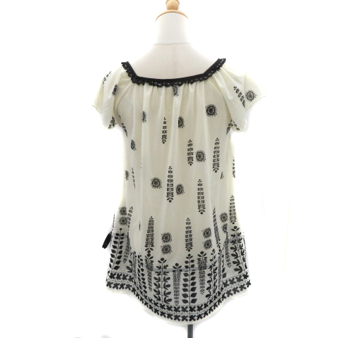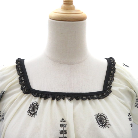 クランプリュス ミッシェルクラン ブラウス カットソー 半袖 スクエアネック シースルー 花柄 38 M アイボリー 黒 ブラック レディース