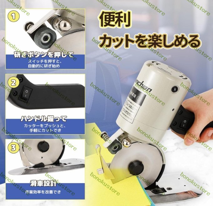 「簡単操作」電源コードを接続してスイッチを押すだけで、カット作業が行えます。機械は軽量で、便利なベースが付いています。これにより、より省力で効果的に作業効率が向上します。