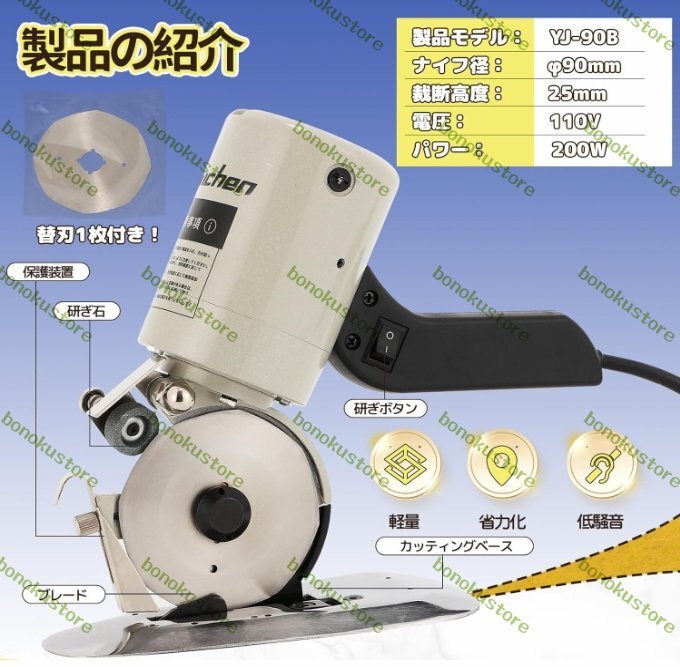 電動カッター 切断厚み25mm(0.98インチ) 手持ち式切断機 厚手の布/レザー/合皮/雑材などを切る用に Φ90mm替刃 YJ-90B (110V)
