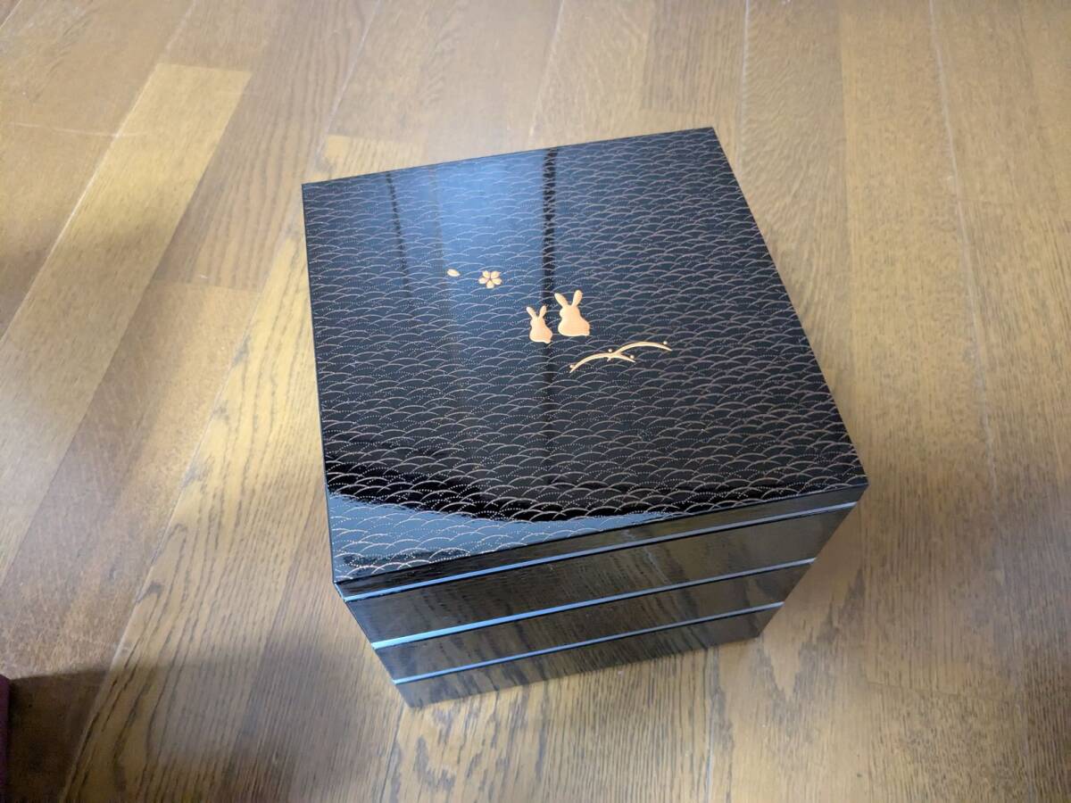 山中漆器 山中塗 三段重 (6.5 角重 溜渕金塗 (中子付))