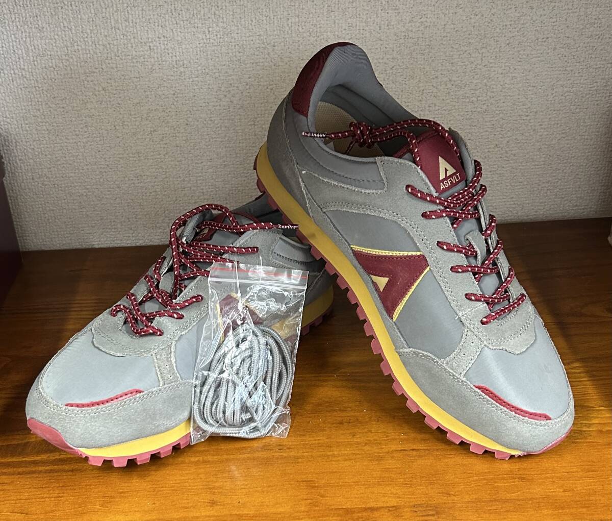 新品★フランスブランドの軽量スニーカー★グレイ・バーガンディ★27.0㎝