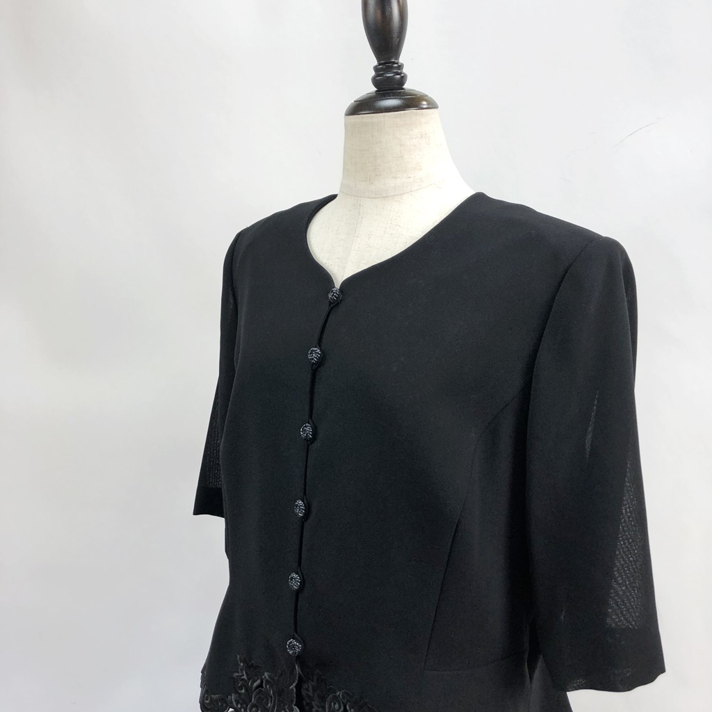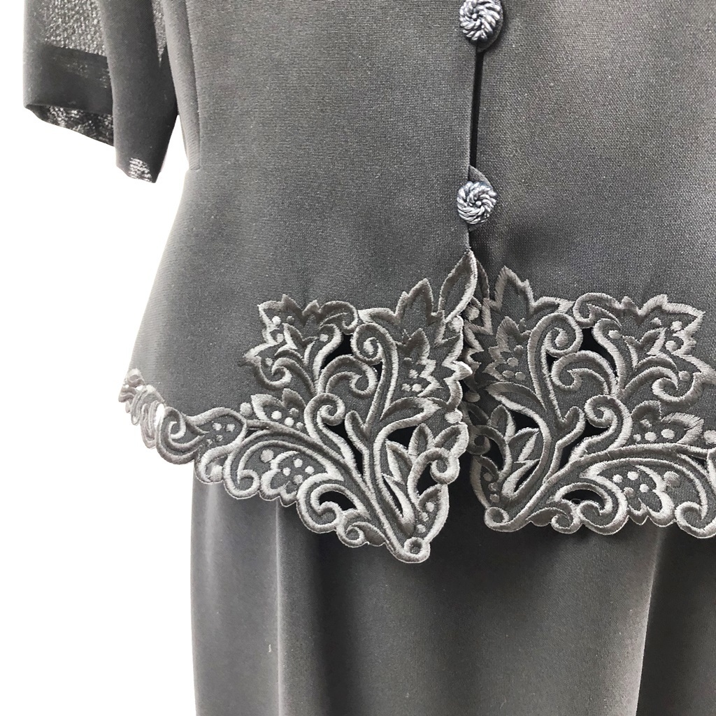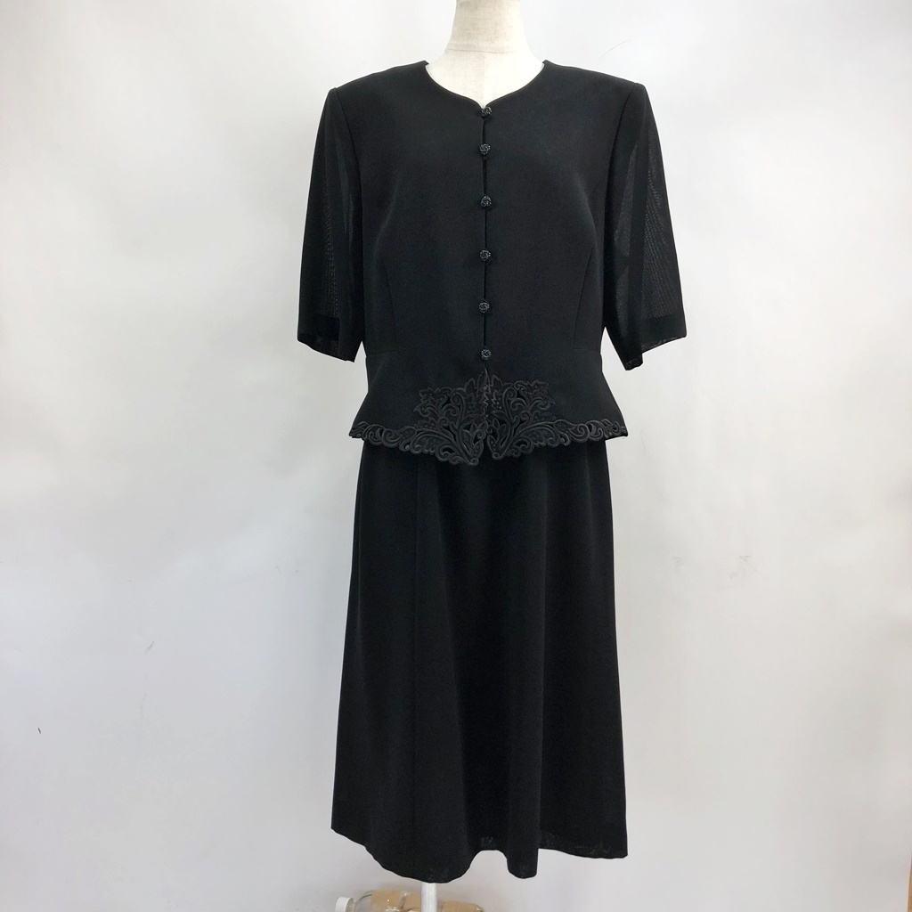 商品: BRODEUR 膝下丈ワンピース 礼服 セレモニーウェア 半袖 裏地あり 肩パッドあり ブラック サイズ15 レディース