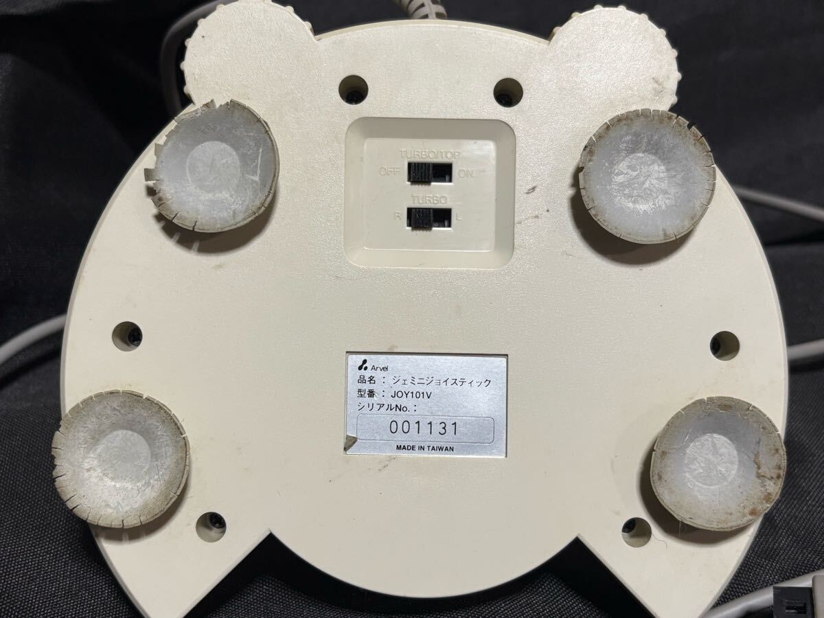 対応するPCがないため動作未確認です。全高約20cm、幅奥行約19cm程度。日焼け等による汚れあり。ピンの形状は写真を参照願います。各ボタンのクリック音はしっかり鳴ります。裏面にターボスイッチらしきスイッチ2つあり。吸盤は劣化してしまっています。動作は保証できないジャンク品としてご理解の上入札願います。