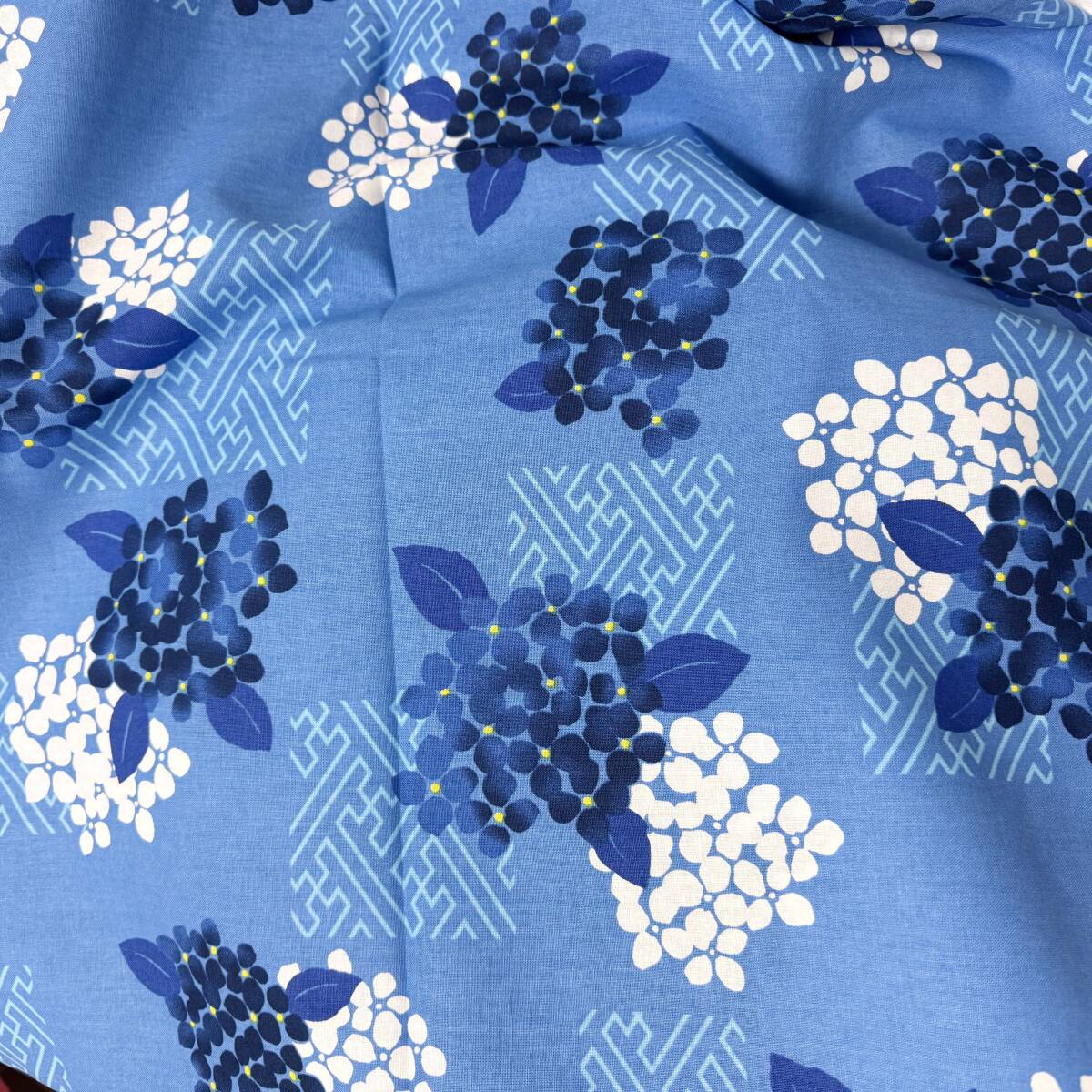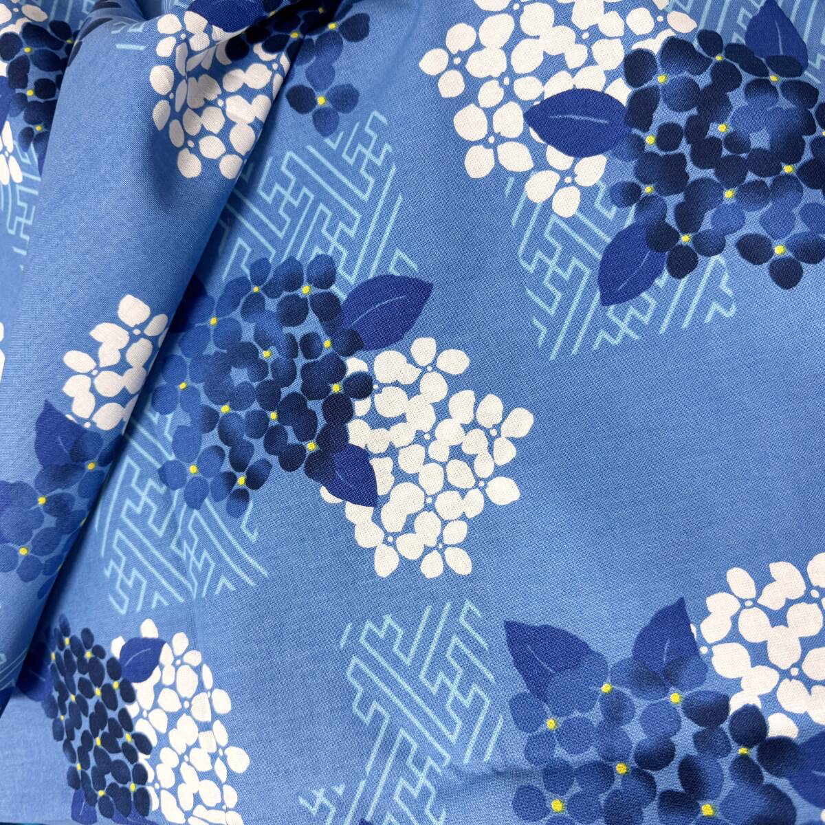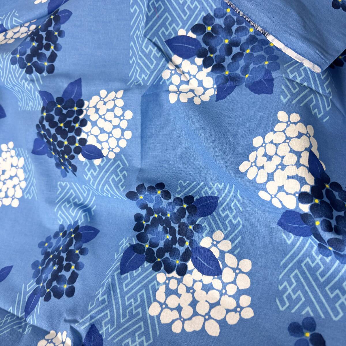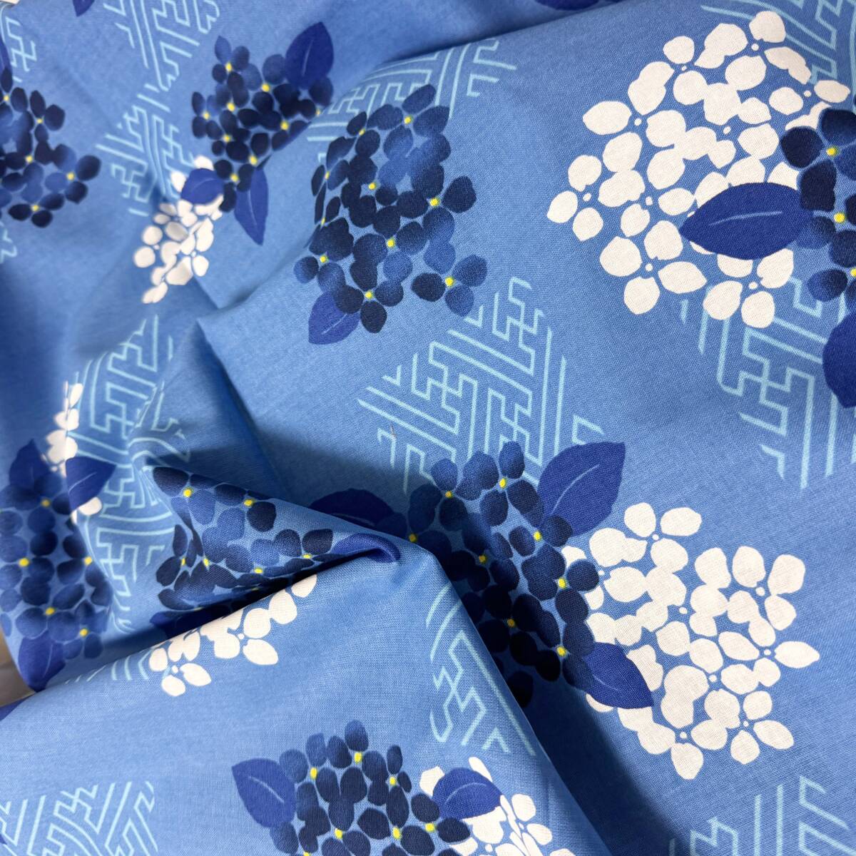 ★1m★綿シーチング生地★布あじさい花柄アジサイ和柄★和風ゆかた浴衣柄ブルー