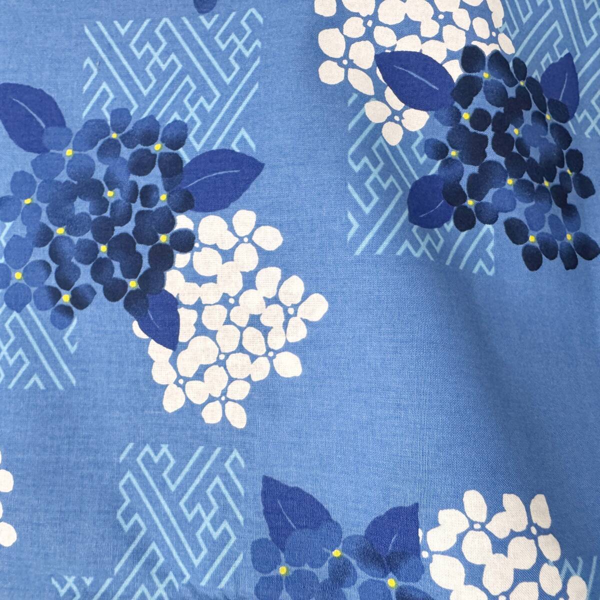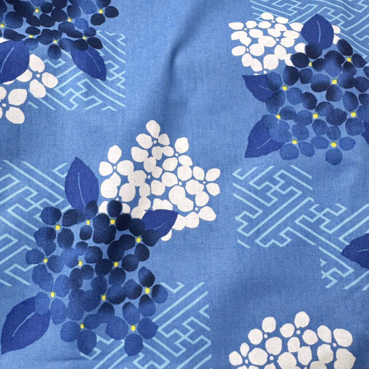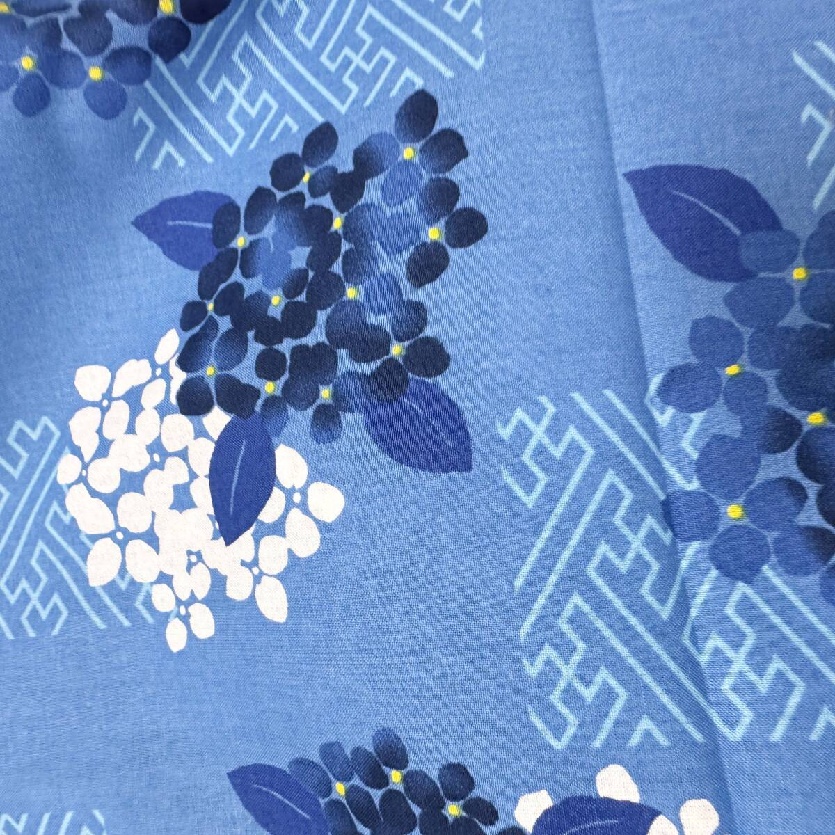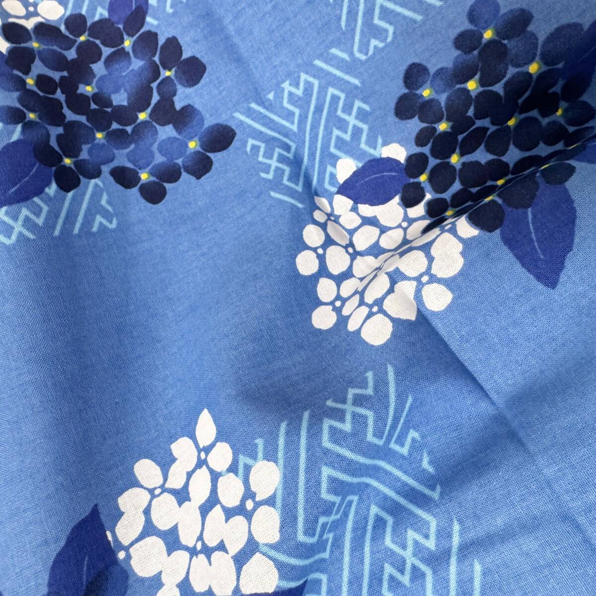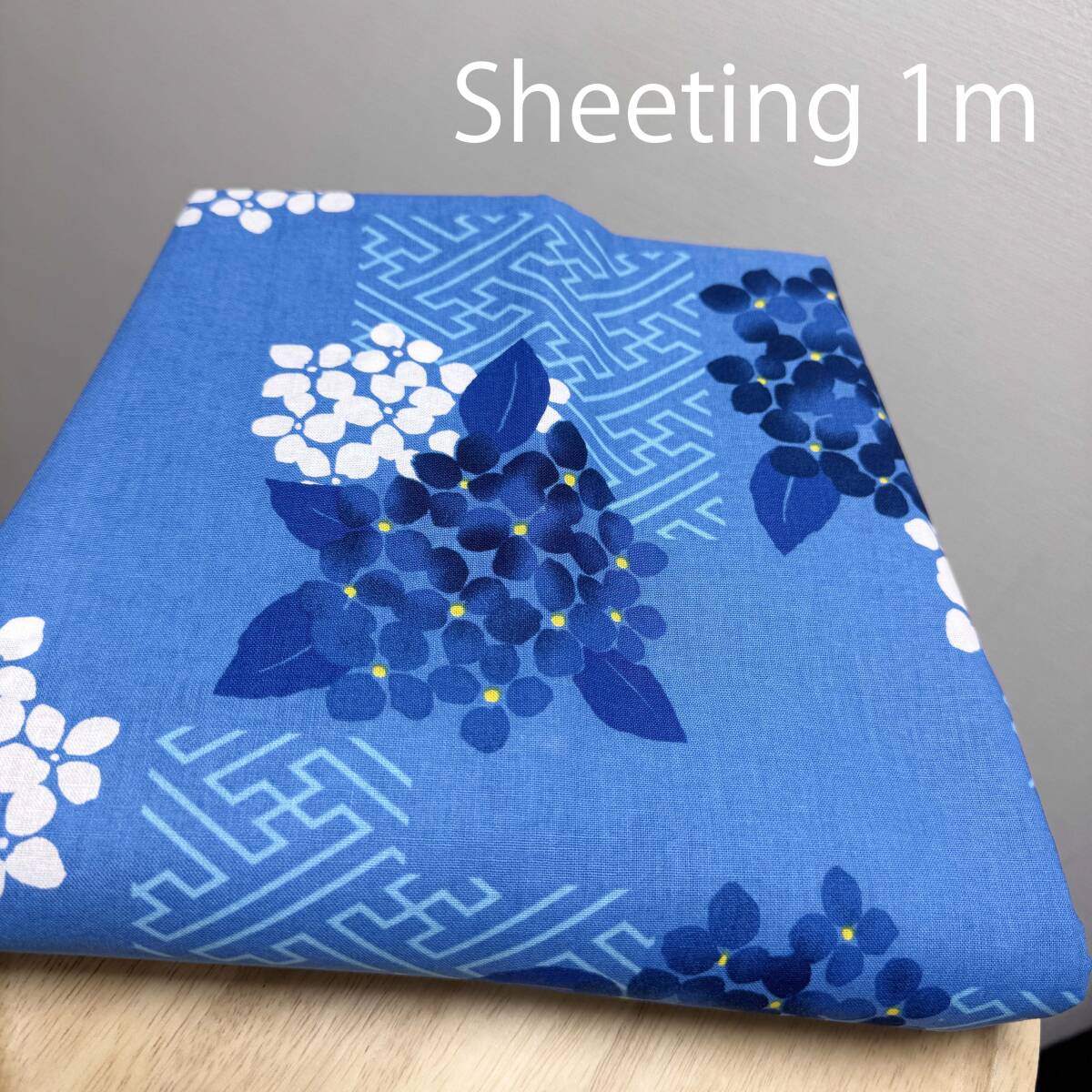 ★1m★綿シーチング生地★布あじさい花柄アジサイ和柄★和風ゆかた浴衣柄ブルー