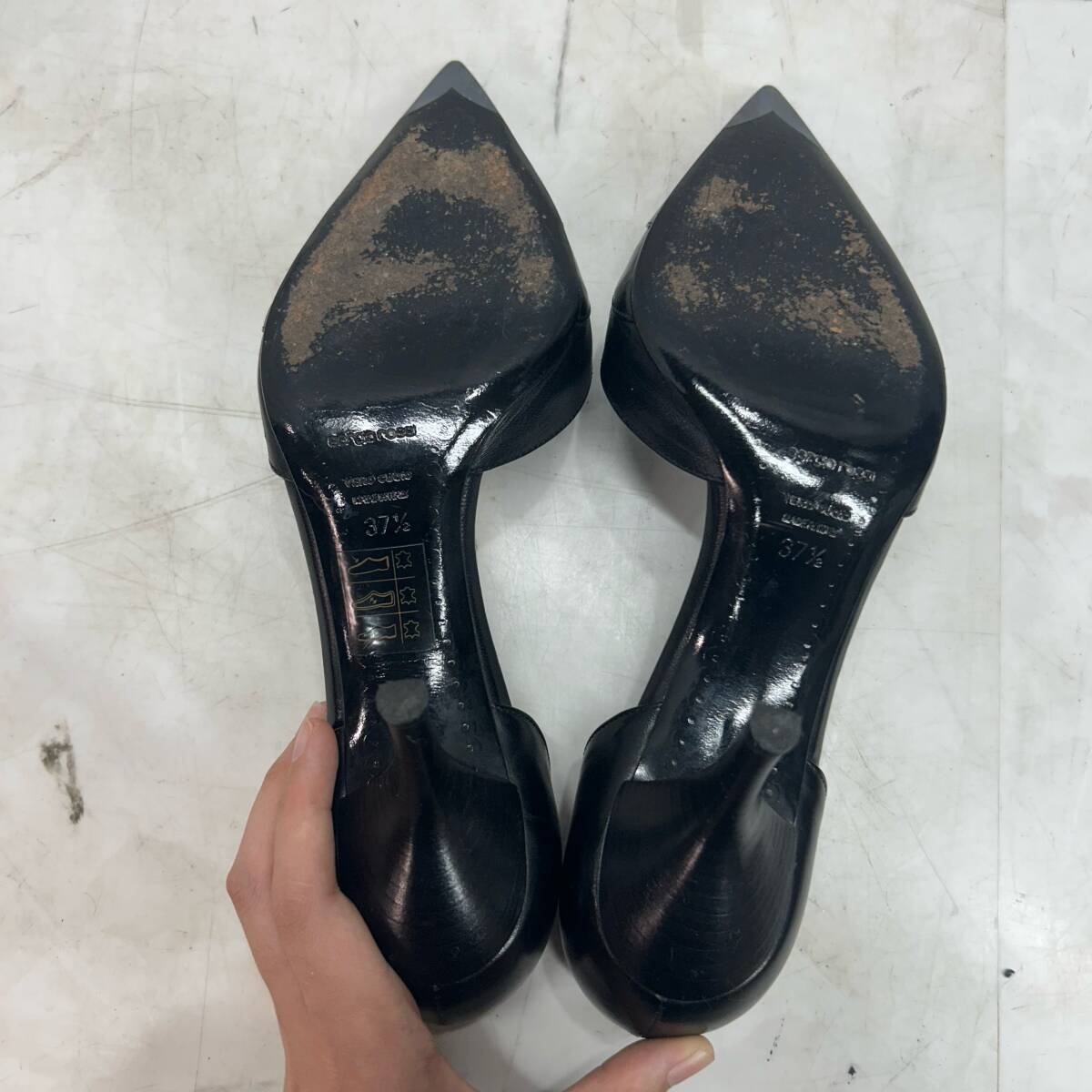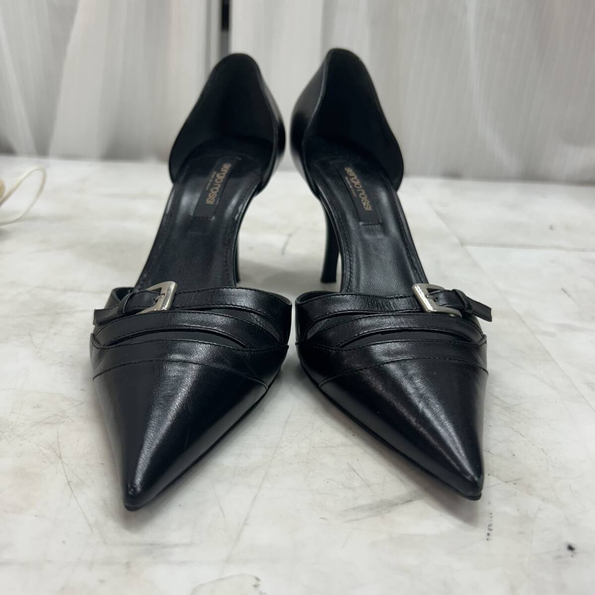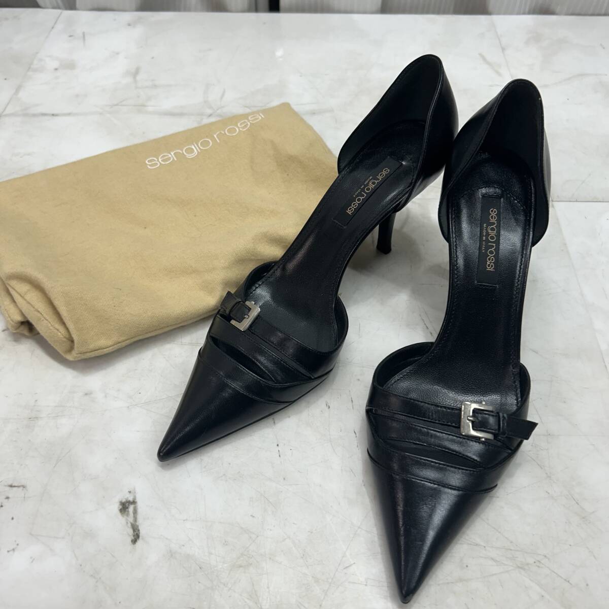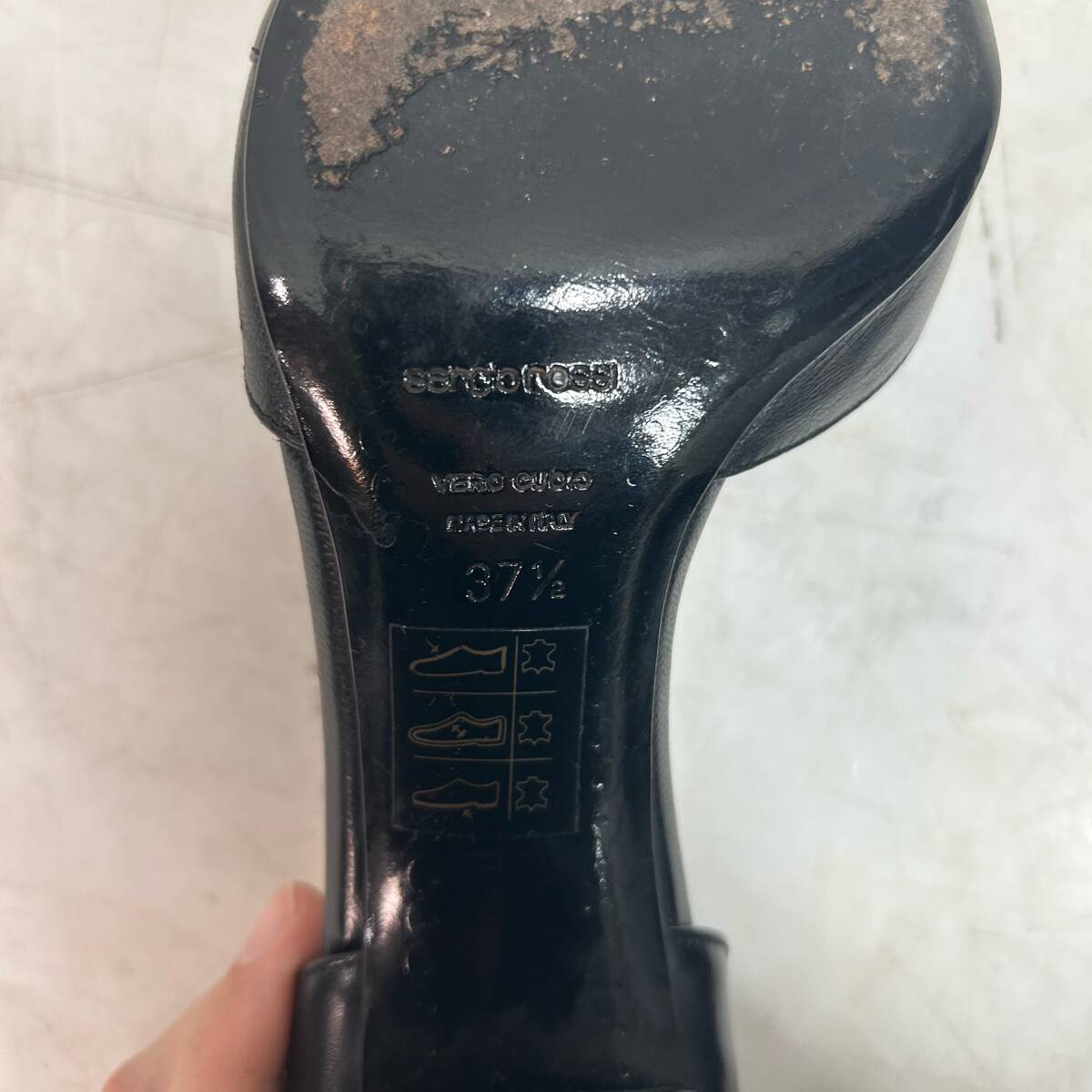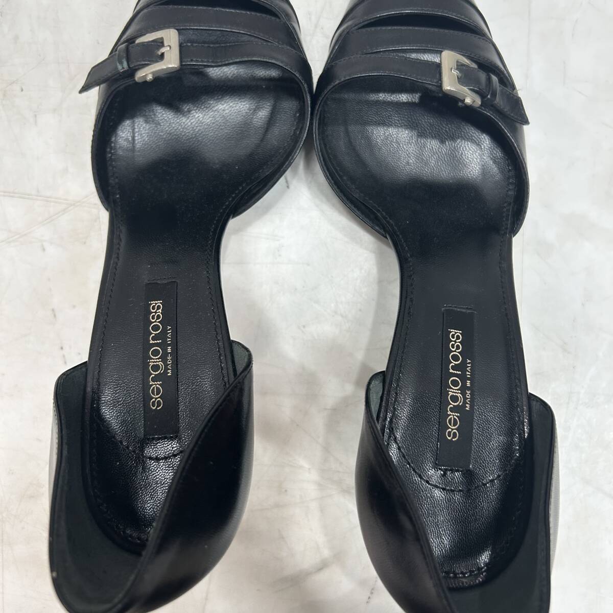 &M& Sergio Rossi セルジオロッシ レザー パンプス サンダル 37 2/1 イタリア製 ヒール 本革 靴 黒 ブラック 中古品 &H-250537