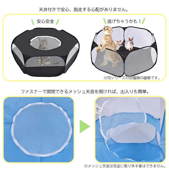 パッと開くだけで設置可能、小動物から子猫や子犬まで幅広く利用できるペット用サークルです。