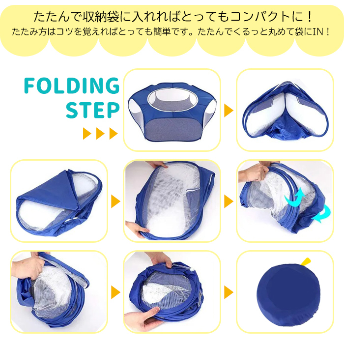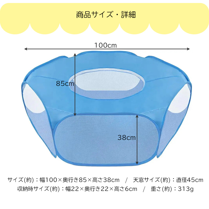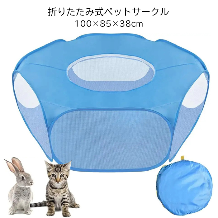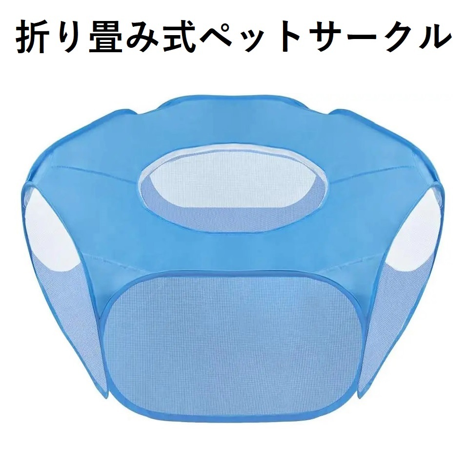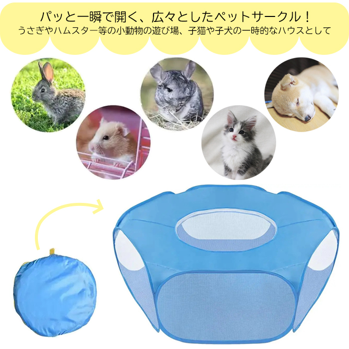 折りたたみ サークル ペットサークル ベビーサークル 子供 ペット 収納 簡単 室内 屋外 インテリア おしゃれ かわいい うさぎ ハムスター チンチラ モルモット 子猫 子犬 コンパクト ポップアップ 屋外 ブルー"