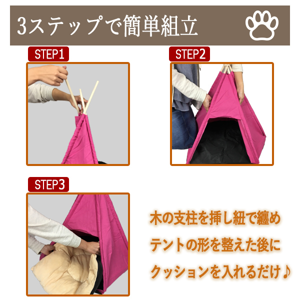 ペットテント ペットハウス インテリア 室内 屋内 快適ペット生活 犬 猫 小動物 クッション 快適 組立簡単 軽量 リラックス フワフワ ペット"