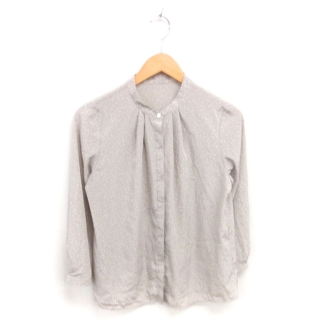 ニューヨーカー NEWYORKER シャツ ブラウス バンドカラー ドット 比翼仕立て 薄手 長袖 11R ライトベージュ 薄茶 /TT