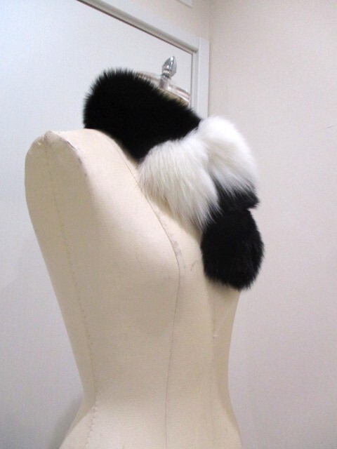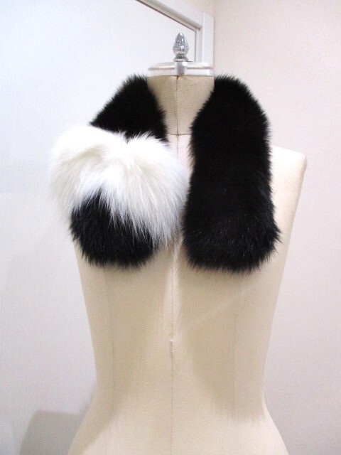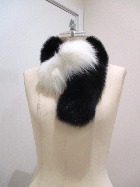 新品 TO BE CHIC フォックスファー 黒白 リアルファーマフラー 毛皮マフラー 送料無料