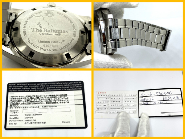 【即決】 TAG HEUER タグホイヤー アクアレーサー バハマカリビアン WAF211R BA0806 メンズ 腕時計 自動巻き 稼動品 日本限定 800本