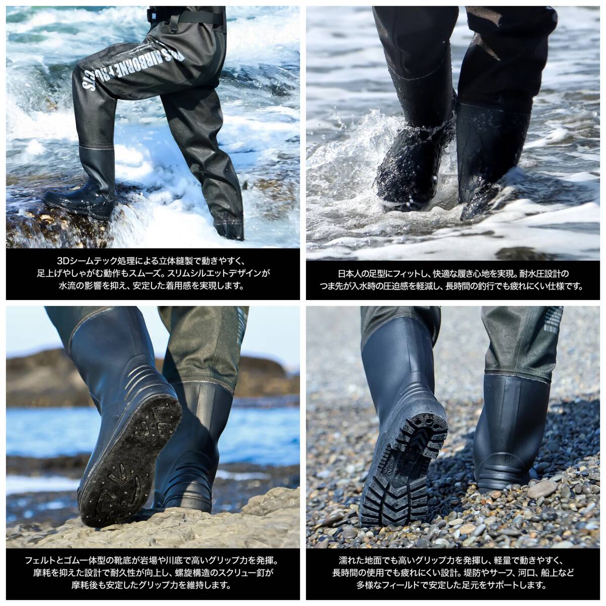 ウェーダーの本体生地は三層構造を採用し、実用性と快適性を大幅に向上。