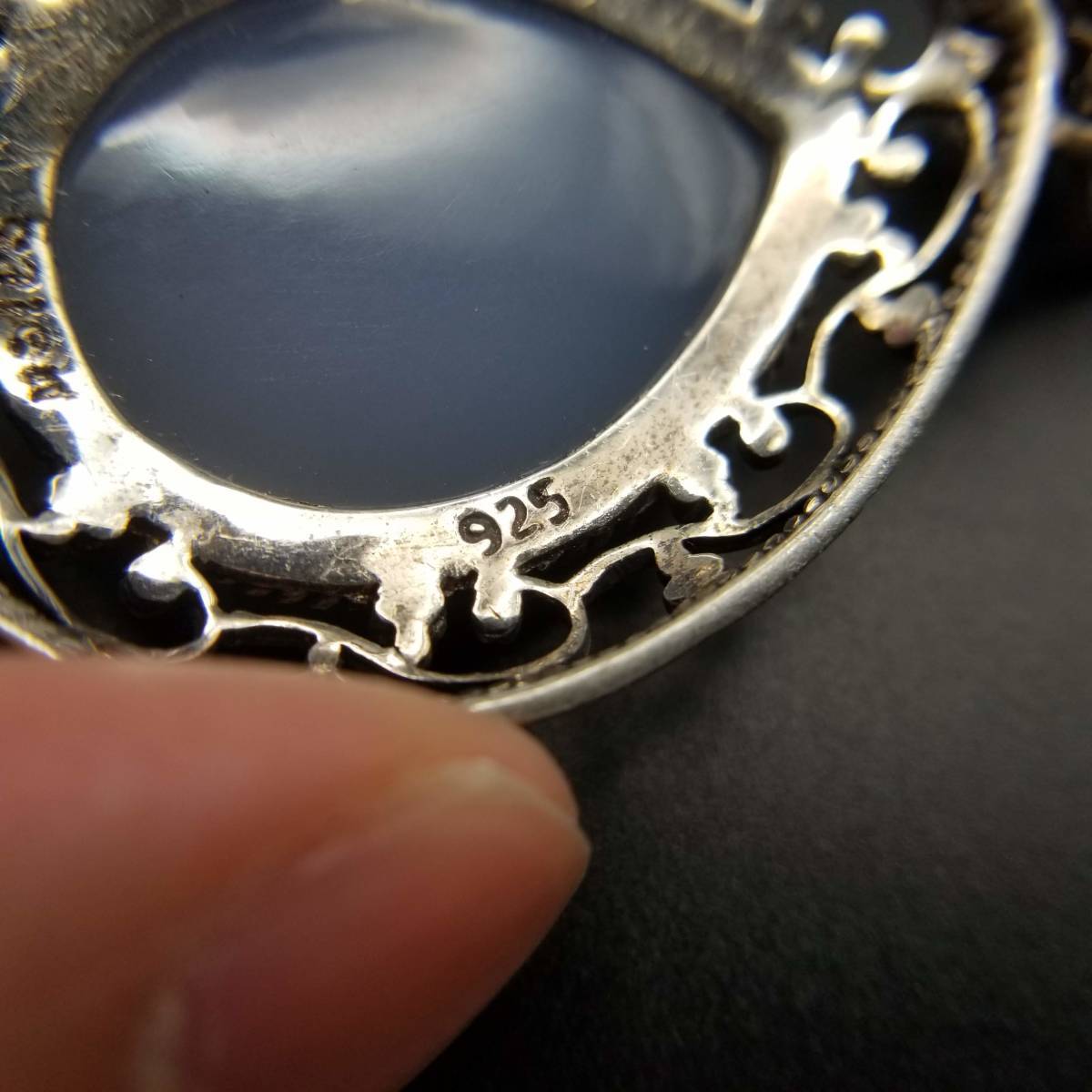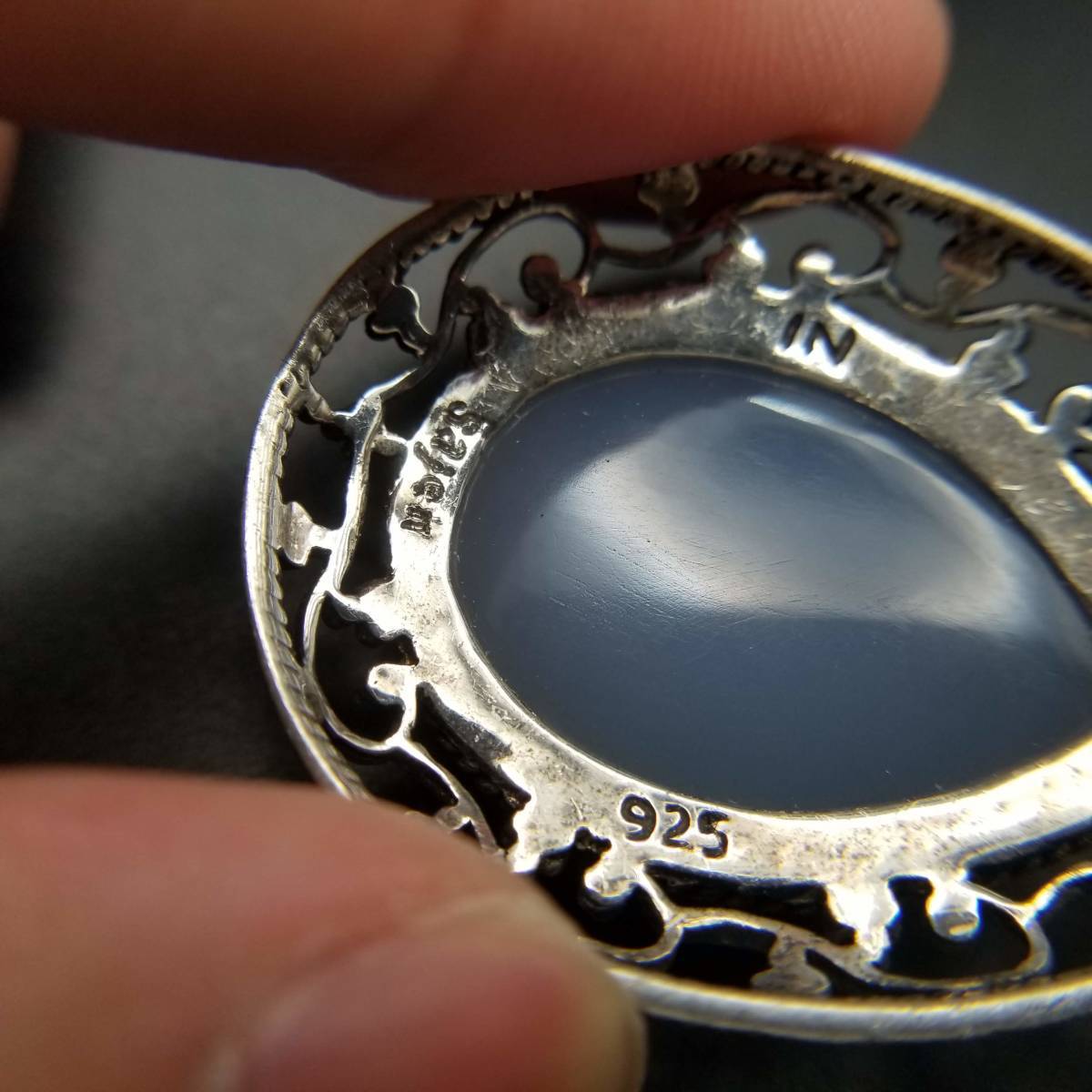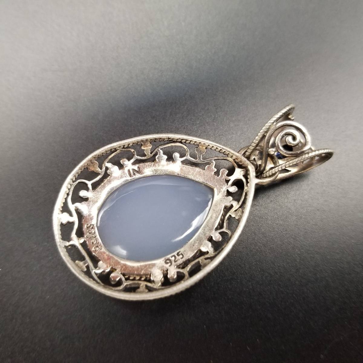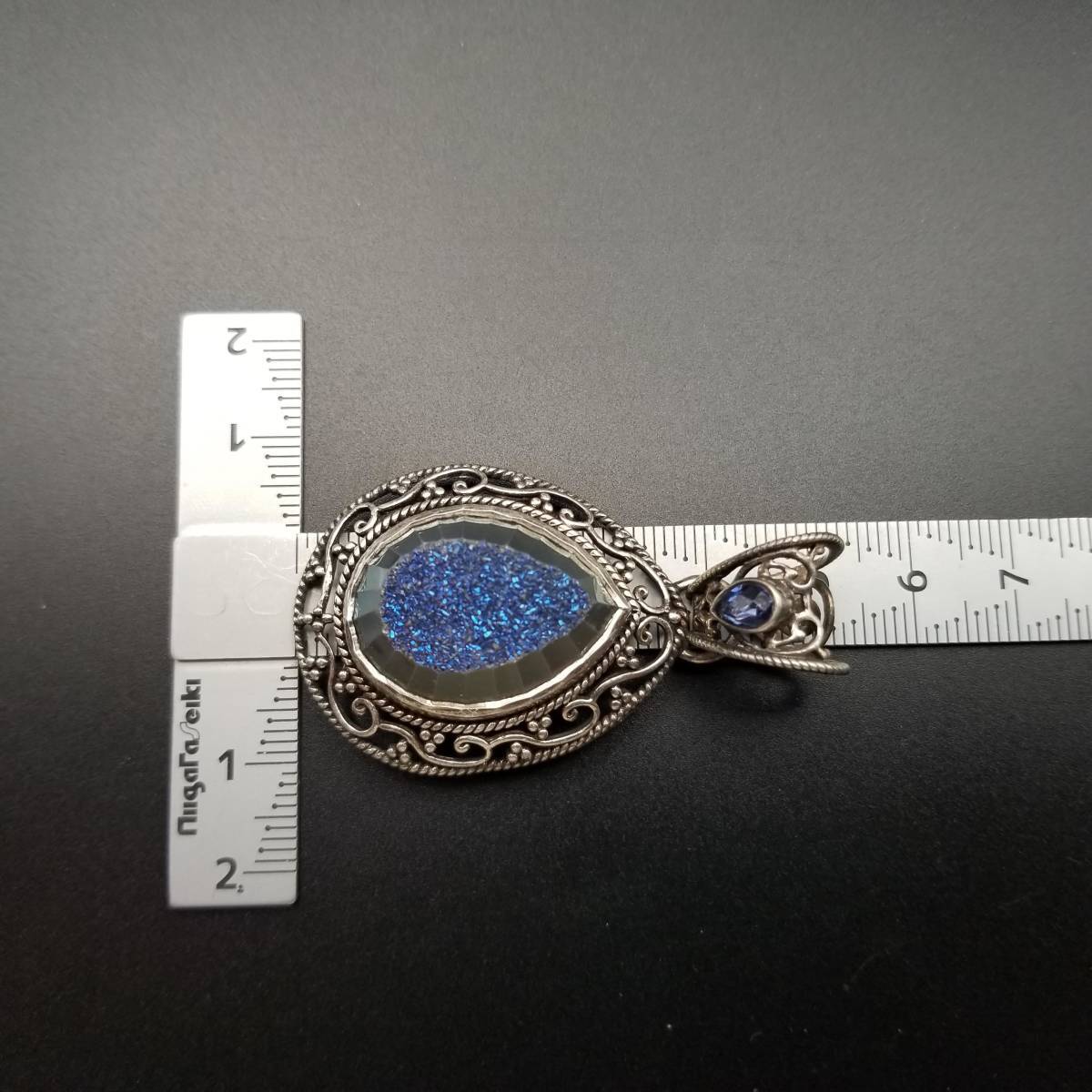 1980年代 Sajen ドゥルージー 結晶 ブルー ペア型 925 シルバー ヴィンテージ チャーム ペンダント 銀 フレーム 天然石 母岩 80's YAU①